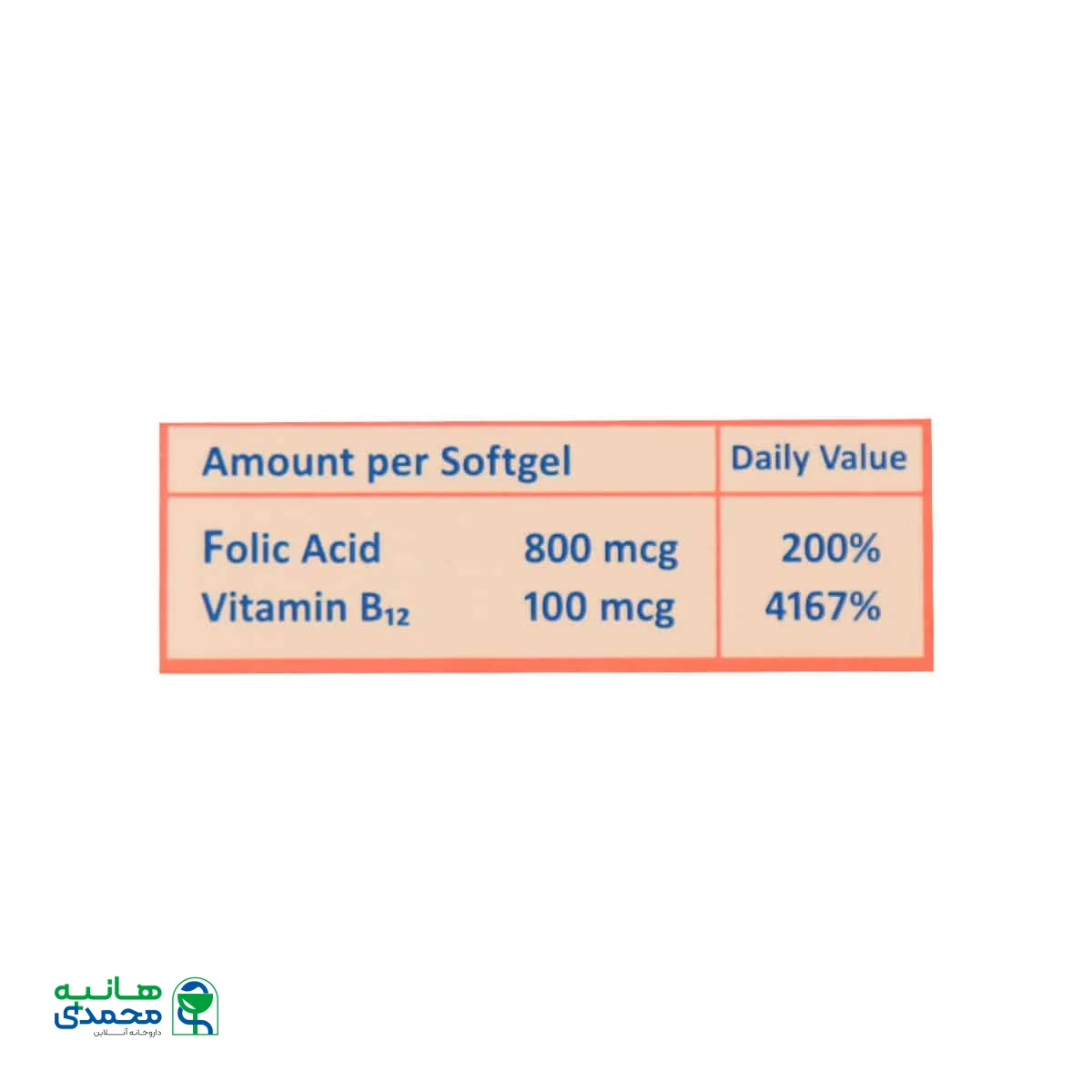 جدول ترکیبات سافت ژل فولیک اسید پلاس ویتامین ب12 سنتروویت