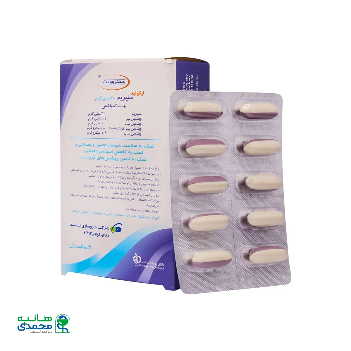 سافت ژل لیکوئید منیزیم 300 میلی گرم و ب کمپلکس سنتروویت مکمل بوده و جهت تشخیص، پیشگیری و یا درمان بیماری نیست.