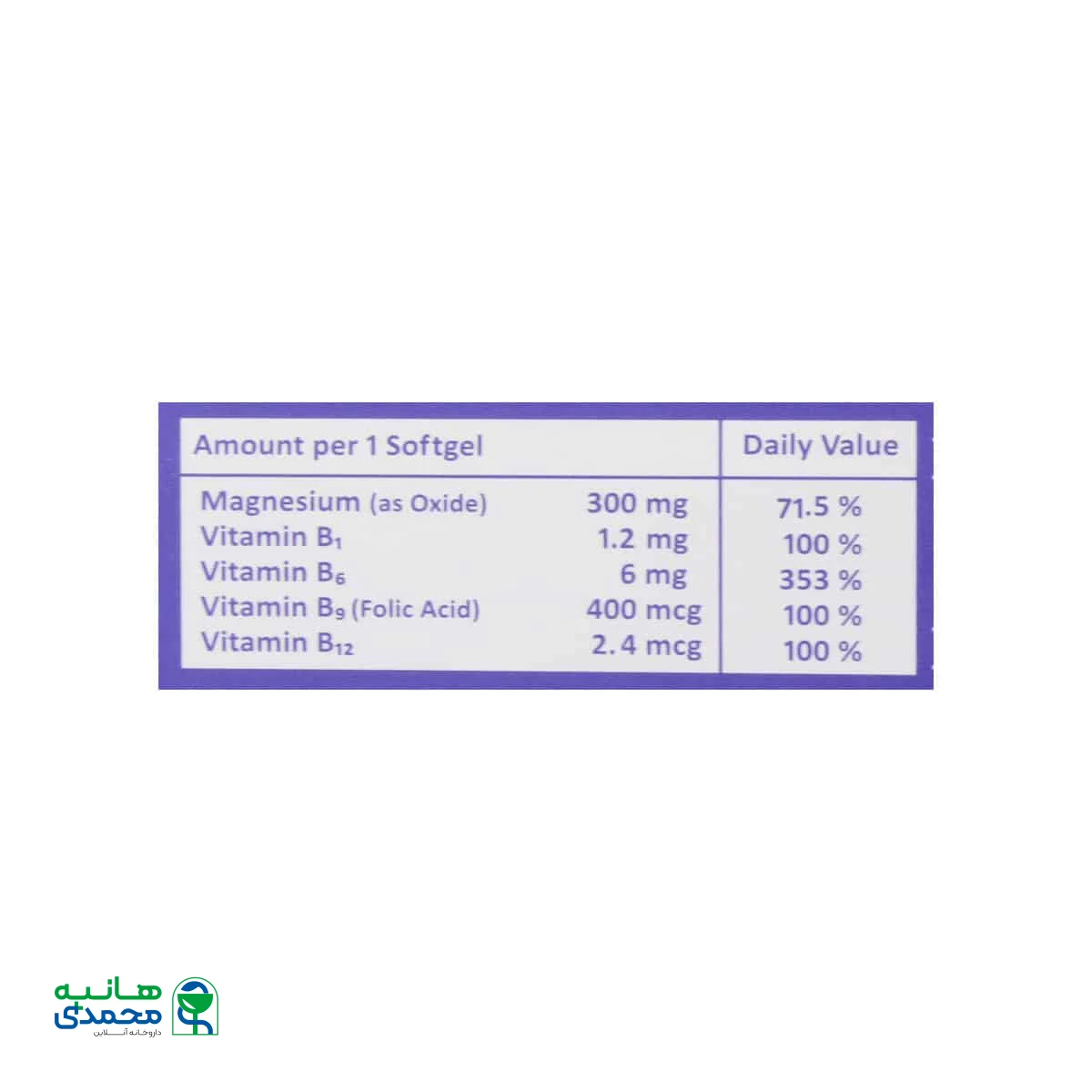 جدول ترکیبات سافت ژل لیکوئید منیزیم 300 میلی گرم و ب کمپلکس سنتروویت