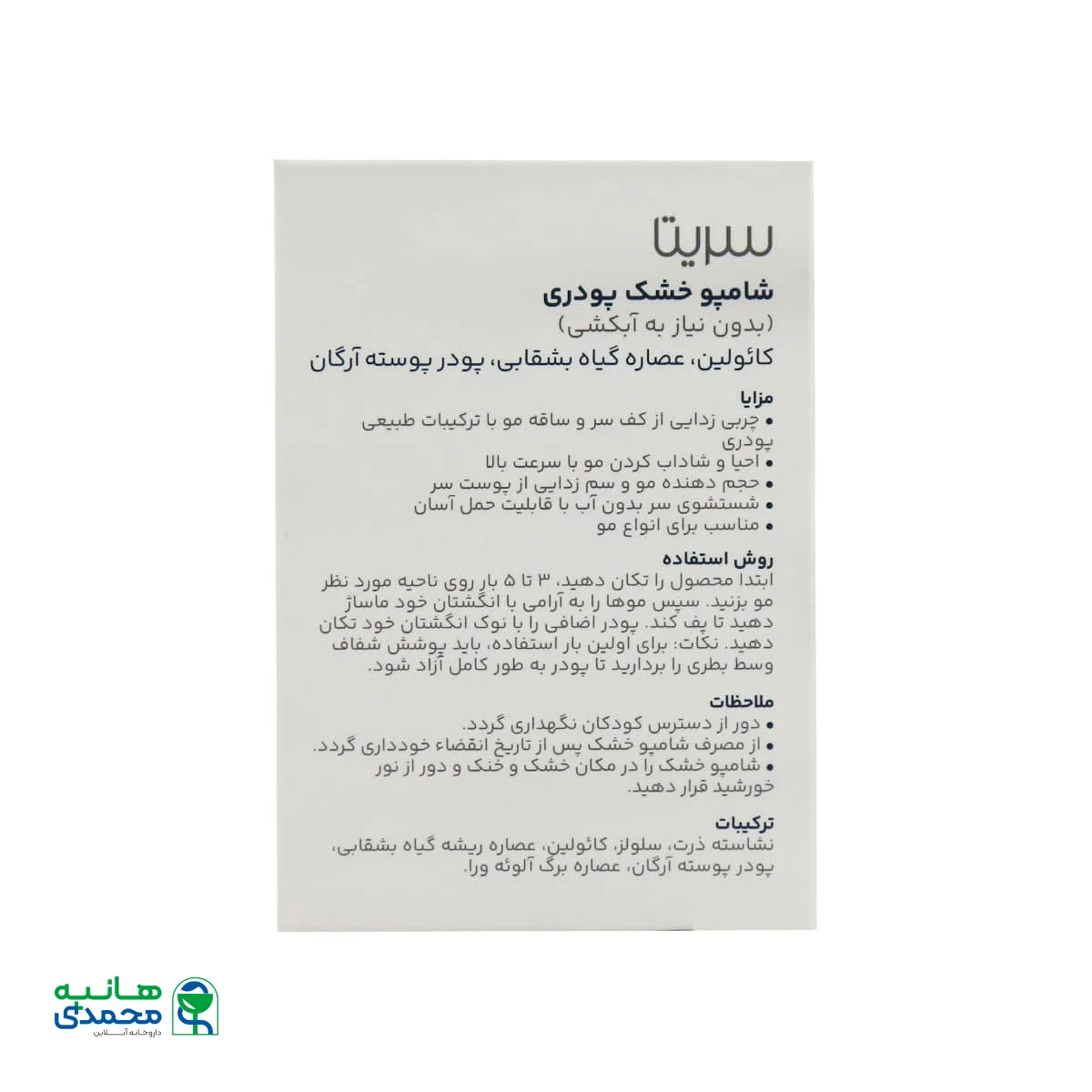ویژگی های شامپو خشک پودری سریتا