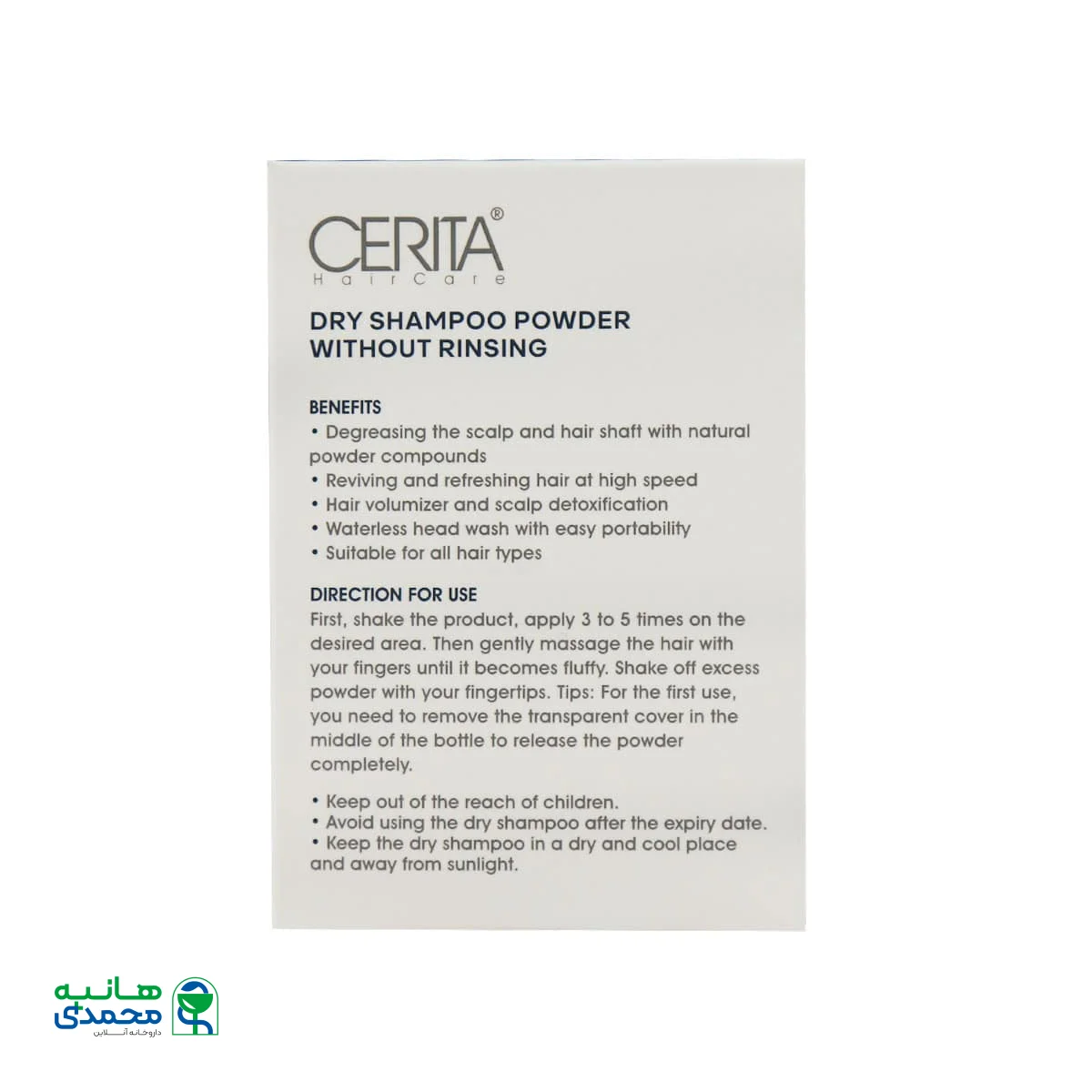 با خرید آنلاین از دکتر هانیه محمدی، نیاز به مراجعه حضوری به داروخانه و صرف وقت و هزینه نیست و به راحتی میتوانید از منزل یا محل کار، سفارش خود را ثبت نمایید و درب منزل یا محل کار تحویل بگیرید. در وبسایت دکتر هانیه محمدی، اطلاعات جامع و کاملی از قبیل ترکیبات، نحوه مصرف، مشخصات محصول و … درج شده است و شما با بررسی آنها میتوانید انتخاب هوشمندانهتری داشته باشید. تیم پشتیبانی داروخانه آنلاین دکتر هانیه محمدی آماده پاسخگویی به سوالات مشتریان در خصوص خرید شامپو خشک سریتا بوده تا شما خریدی لذت بخش را تجربه کنید.