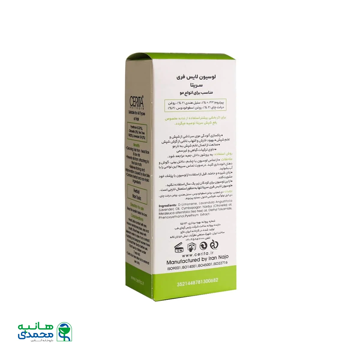 لوسیون ضد شپش لایس فری سریتا مناسب انواع مو 50 میلی لیترCerita Lice Free Hair Care Lotion 50 ml