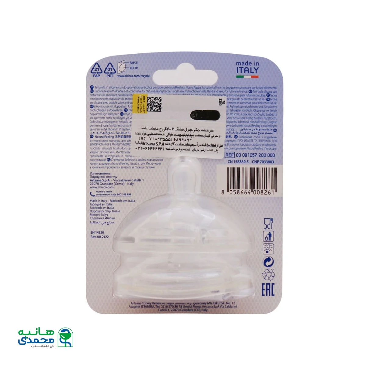 - سر شیشه غذا خوری چیکو نچرال فیلینگ +6 ماه با طراحی ارگونومیک و مشابه به سینه مادر، تجربه ای طبیعی و دلپذیر از تغذیه را برای نوزادان فراهم میکند که این طراحی باعث میشود که نوزاد بدون هیچ گونه مقاومتی به تغذیه با شیشه عادت کند.
