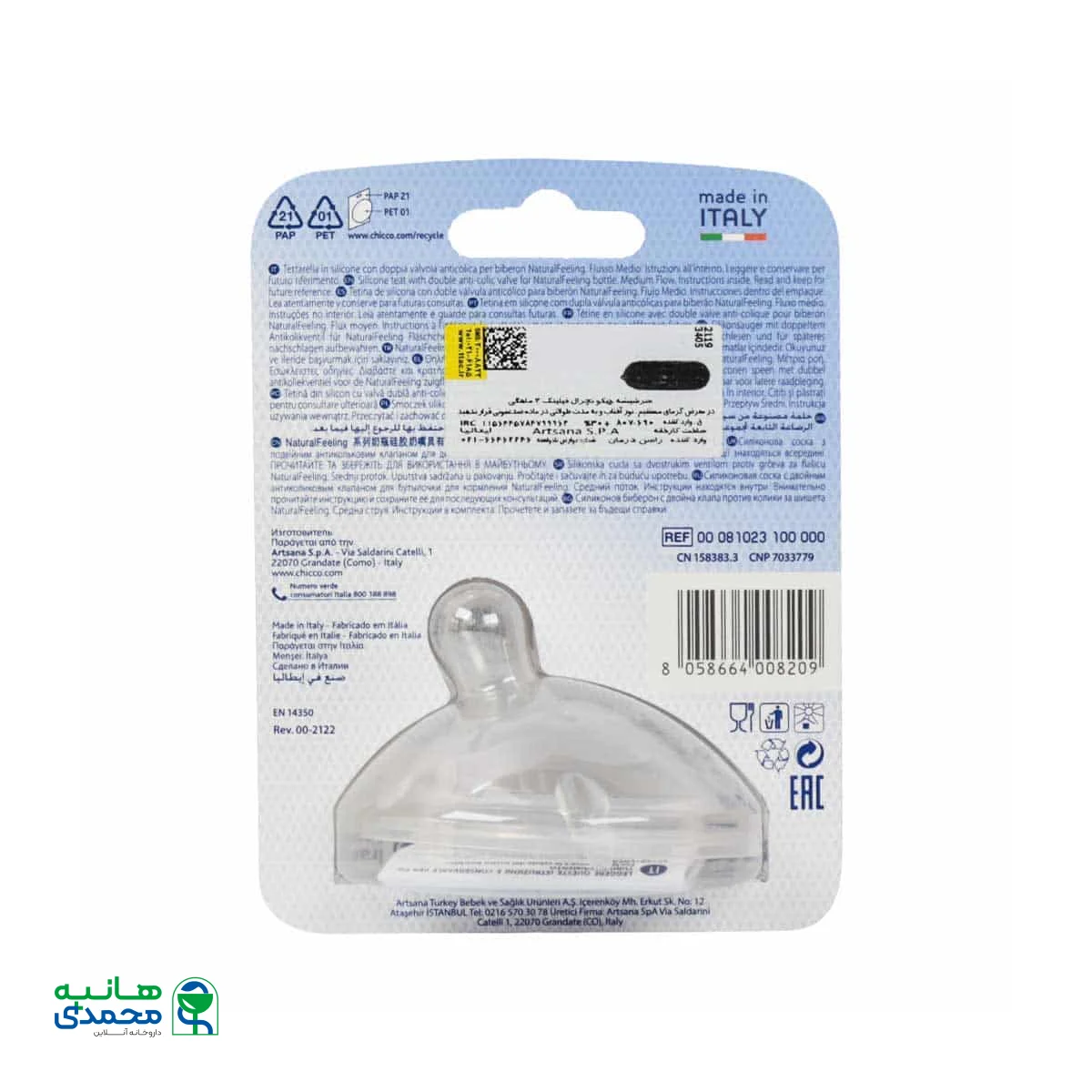 مشخصات کلیChicco Natural Feeling Silicone Teat 2m