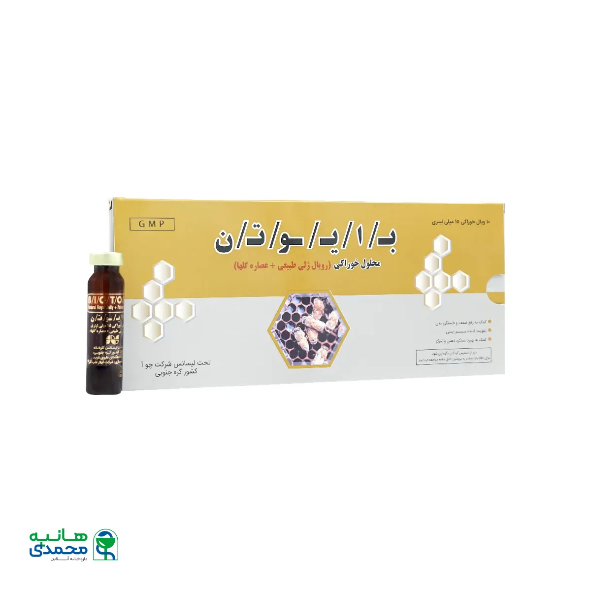 آمپول خوراکی بایوتن حاوی رویال ژلی طبیعی و برگرفته از عصاره گل‌ها بوده که تقویت‌کننده قوای جسمانی است. عسل، روغن جوانه گندم، عصاره گرده گل و رویال ژلی از ترکیبات اصلی بایوتن است. از خواص منحصربه‌فرد این محصول می‌توان به، بهبود عملکرد ذهنی، افزایش تمرکز، افزایش میل جنسی و شادابی و طراوت پوست اشاره کرد.