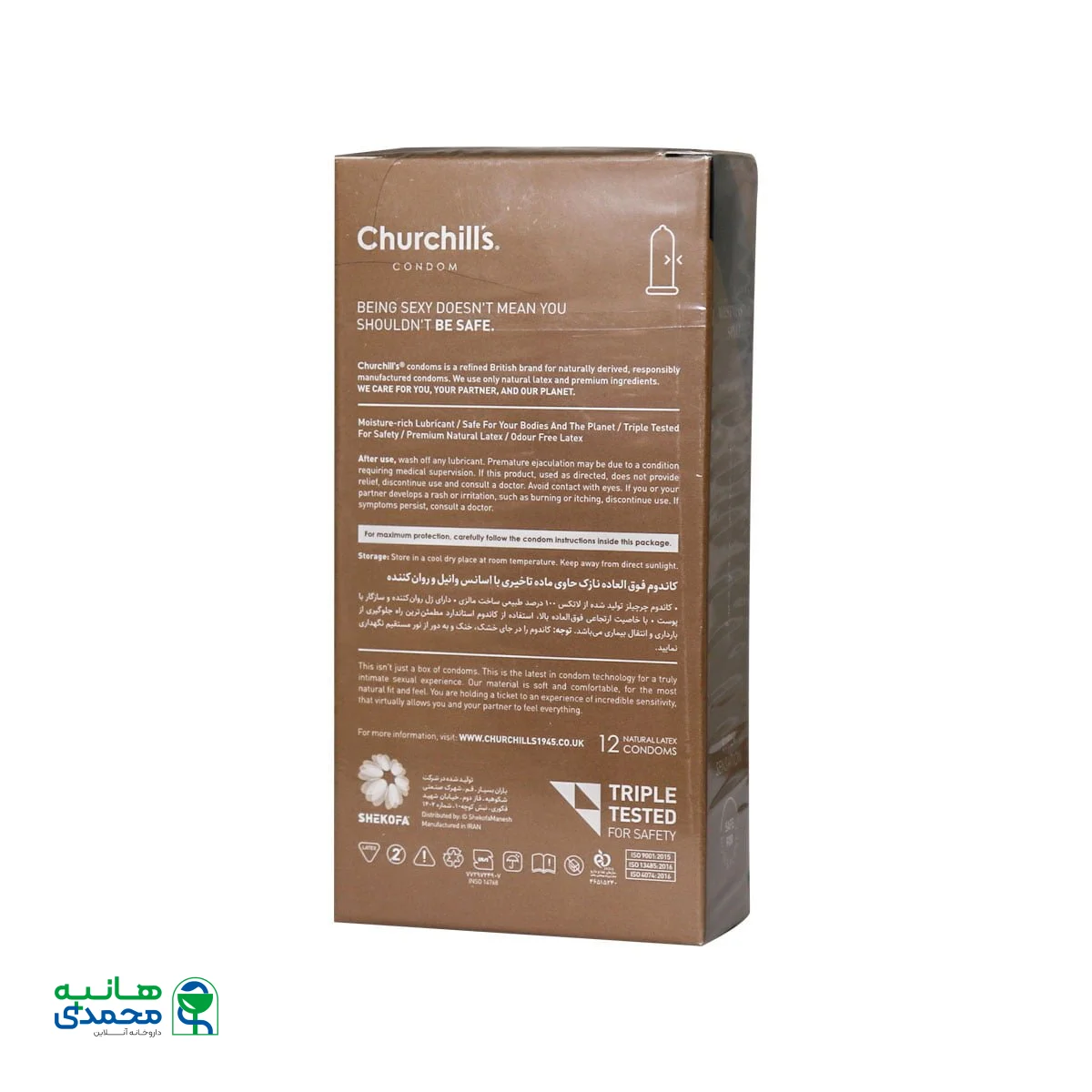 کاندوم فوق العاده نازک چرچیلز حاوی ماده تاخیری 12 عددChurchill’s Ultra Thin Condom 12 pcs
