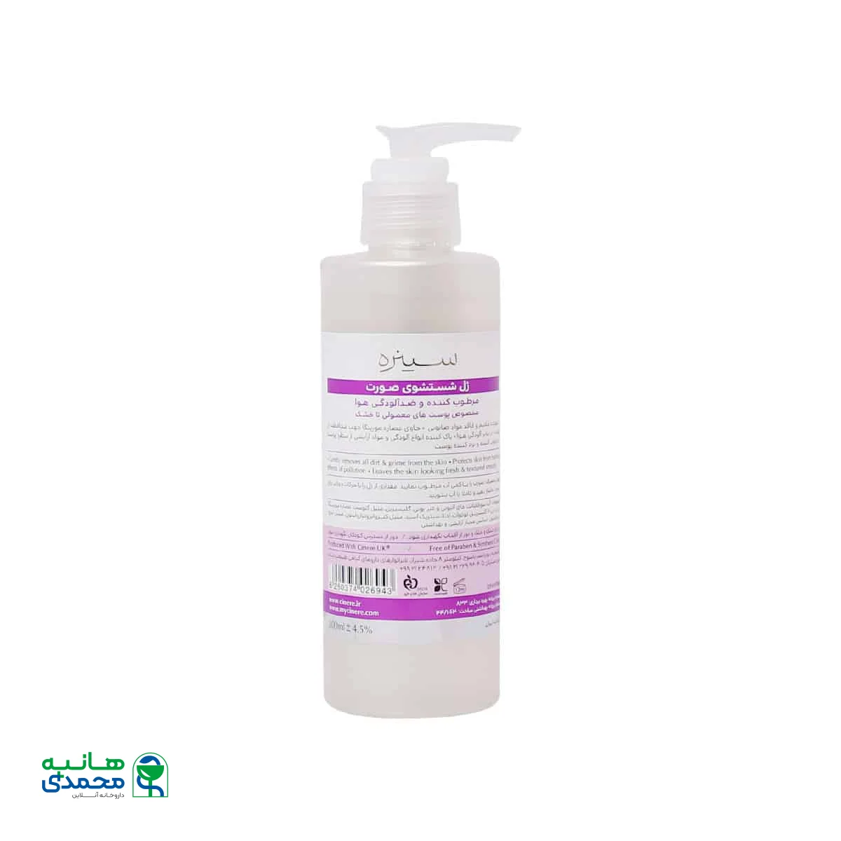 ژل شستشوی صورت ضد آلودگی هوا سینره شوینده ای ملایم و فاقد مواد صابونی است که پوست را از مواد آرایشی و آلودگی‌ها پاک می‌کند.
