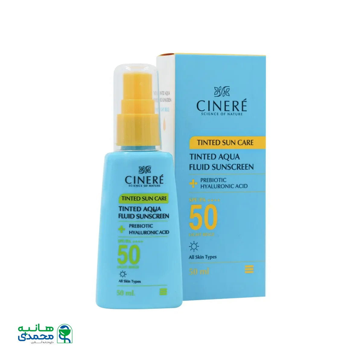 ضد آفتاب رنگی فلوئیدی سینره مناسب انواع پوست یک محصول تخصصی برای محافظت کامل از پوست در برابر اشعه‌های مضر خورشید است که بافتی بسیار سبک و جذب سریع دارد. این محصول برای افرادی طراحی شده است که به دنبال یک محافظ قدرتمند در برابر اشعه‌های خورشید هستند، بدون اینکه حس چربی یا سنگینی روی پوست ایجاد شود. هیالورونیک اسید نیز یکی از ترکیبات اصلی این محصول بوده که در آبرسانی عمیق پوست صورت نقش دارد و به افزایش نرمی و لطافت آن کمک می‌کند. این محصول در قالب بطری‌های پمپ دار 50 میل تولید شده که استفاده از آن را بسیار راحت می‌کند.