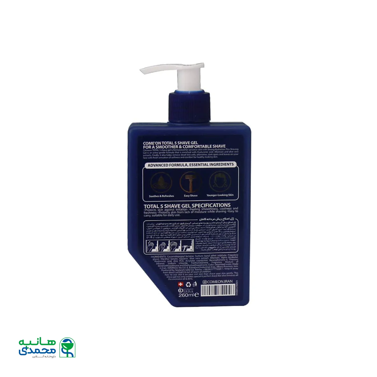 ژل اصلاح ریش مردانه مدل توتال 5 کامان مناسب پوست حساسComeon Total 5 Shave Gel For Men