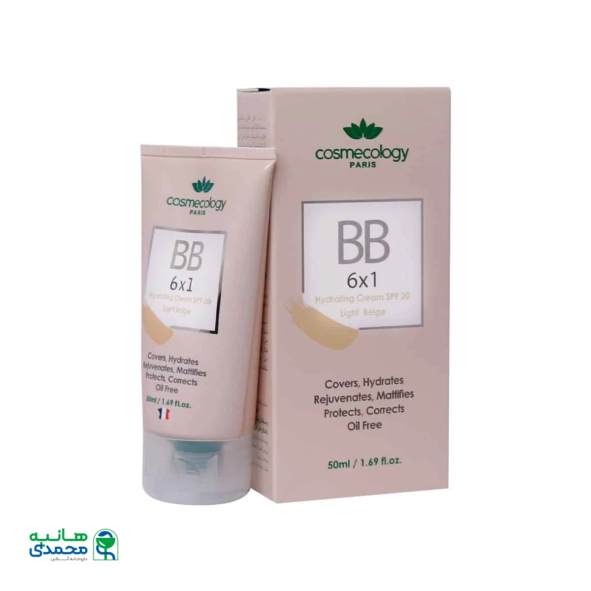 اگر صبح‌ها خیلی دیر از خواب بیدار می‌شوید و وقت کمی برای آرایش و یا مراقبت از پوست دارید، کرم رطوبت رسان 6 در 1 رنگی فاقد چربی کاسموکولوژی طی مدت زمان چند ثانیه کاور خوبی به پوست شما می‌دهد. پوشانندگی خوب و بافت سبک و مخملی آن موجب می‌شود تا پس از استفاده شاهد پوست یکنواخت و یکدست باشید. این ب ب کرم خوب حاوی اس پی اف 20 بوده و از پوست در برابر اشعه‌های uva و uvb محافظت می‌کند. کرم 6 در 1 رطوبت‌رسان کاسمکولوژی حاوی چای سبز، روغن دانه انگور، دانه سویا، شی باتر و اوره بوده و به خوبی پوست را تقویت می‌کند. علاوه بر آن کرم مرطوب کننده شش کاره کازموکولوژی کیفیت بالایی داشته و به شادابی و طراوت پوست کمک می‌کند.