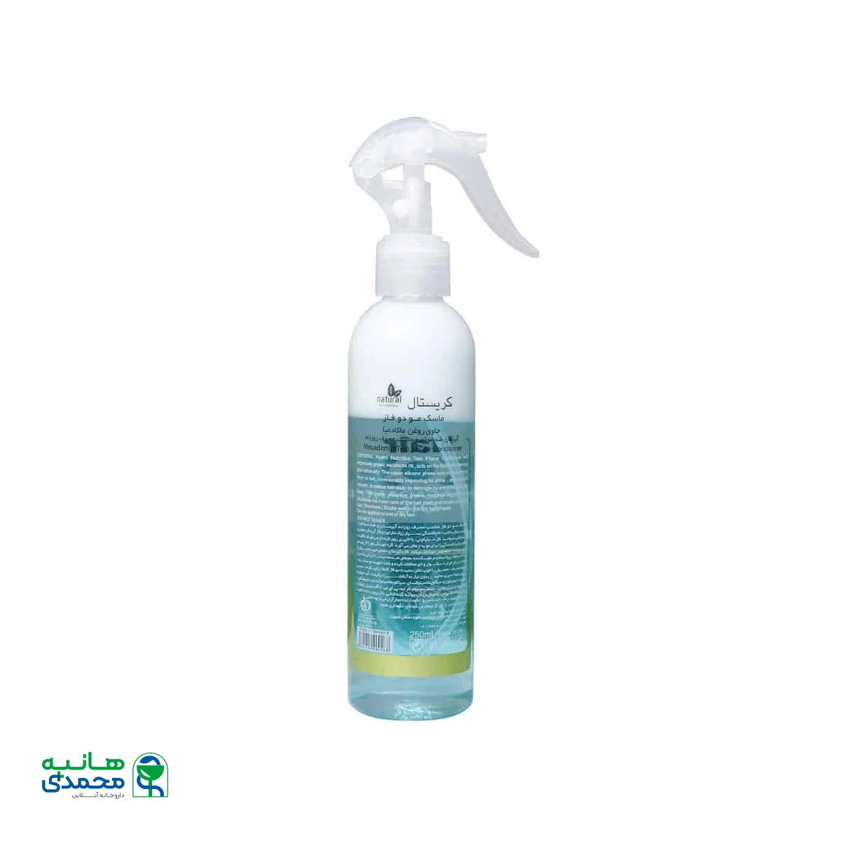 محصول را خوب تکان دهید تا دوفاز کاملا ترکیب شوند. سپس اسپری آبرسان ضد موخوره کریستال را بر روی موها اسپری نمایید. این اسپری بدون نیاز به آبکشی است.