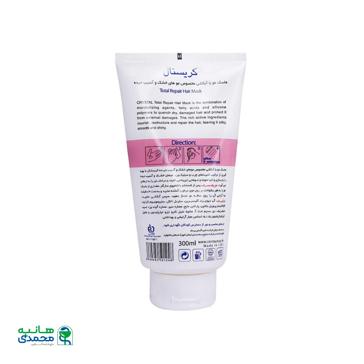 ماسک مو تیوپی با آبکشی موهای خشک و آسیب دیده کریستال 300 میلی لیترCrystal revitalizing mask total repair for dry hair 300 ml