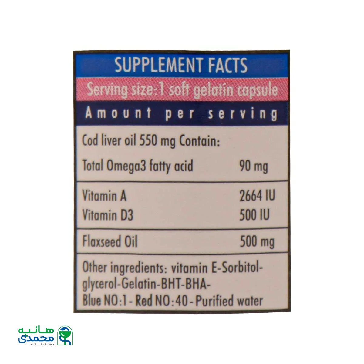 - حاوی امگا3، ویتامین A و ویتامین D3 و روغن دانه کتان