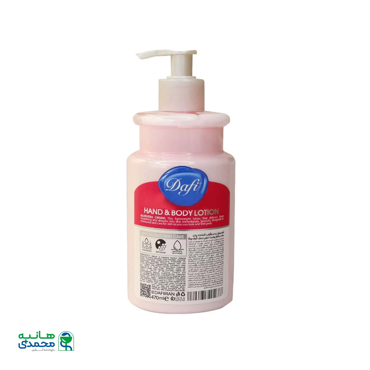 پوست دست و صورت یکی از حساس ترین نقاط بدن است، به همین دلیل توجه و اهمیت دادن به پوست آنها و خرید کرم مرطوب کننده اهمیت زیادی دارد. لوسیون مرطوب کننده بدن آلوئه ورا دافی مناسب انواع پوست در درمان خشکی و ترکهای پوستی و جلوگیری از آن نقش بسزایی ایفا میکند. همچنین با ترکیبات موثرش باعث سلامت و لطافت در پوست دست، صورت و بدن میشود. در ترکیبات این محصول آلوئه ورا، هیالوروینک اسید، ویتامین E، ویتامین C، ویتامین B5 و … دیده میشود که باعث تقویت پوست دست و صورت میشوند. این لوسیون با بافت سبک به سرعت جذب پوست میشود.