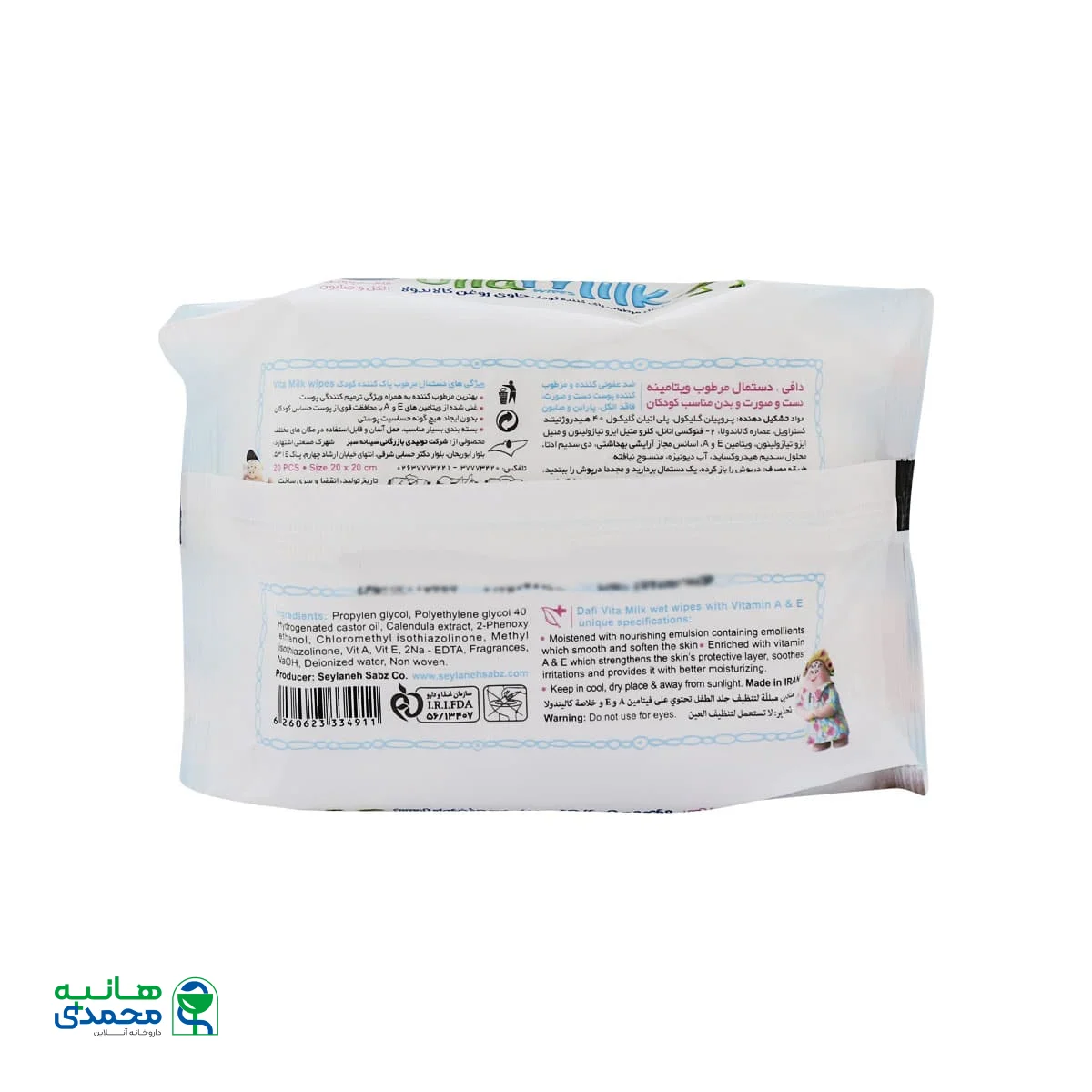 دستمال مرطوب کودک ویتامیلک دافی 20 عددDafi Vita Milk Wipes for Children 20 pcs