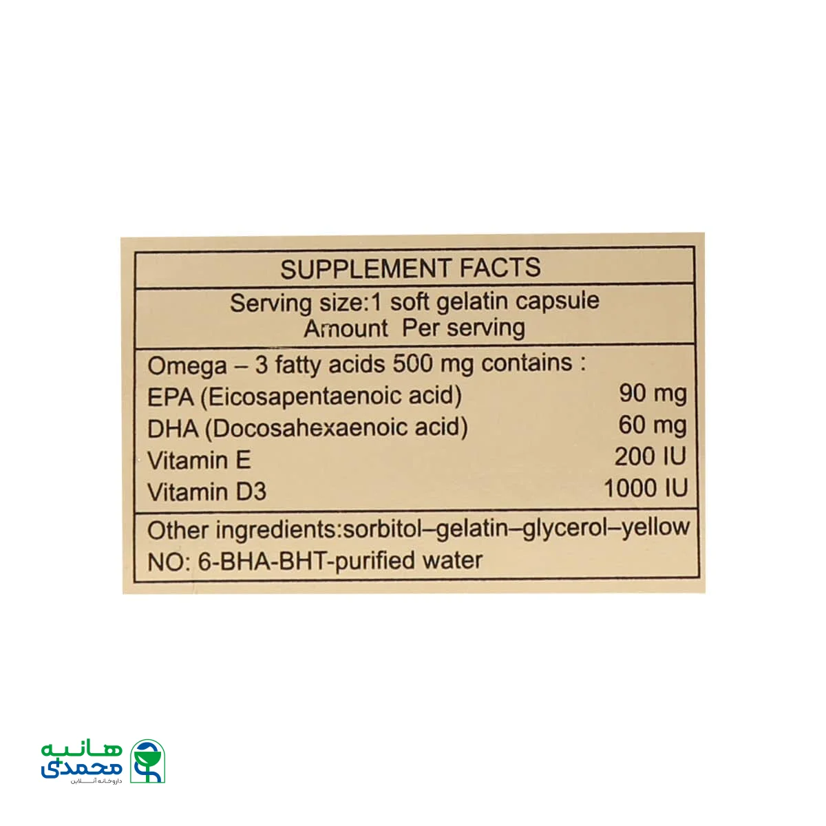 جدول ترکیبات سافت ژل امگا 3 500 میلی گرم پلاس ویتامین D3 و ویتامین E دانا