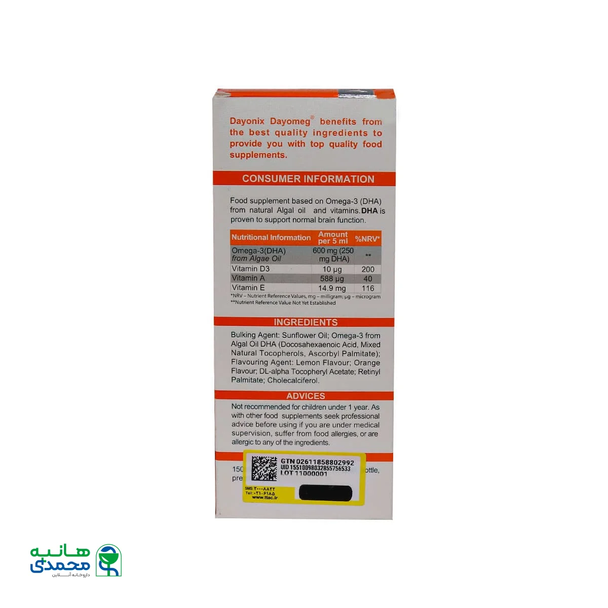 شربت امگا 3 دیومگ دایونیکس فارما 150 میلی لیترDayonix Daymeg Omega 3 150ml