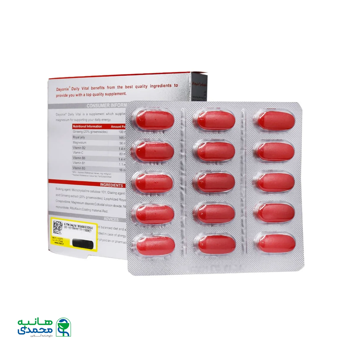 قرص دیلی ویتال دایونیکس فارما محصولی مناسب حاوی ویتامین‌های گروه ب، ویتامین C، عصاره جینسینگ و رویال ژلی است که به تقویت سیستم ایمنی بدن کمک موثری می‌کند.
