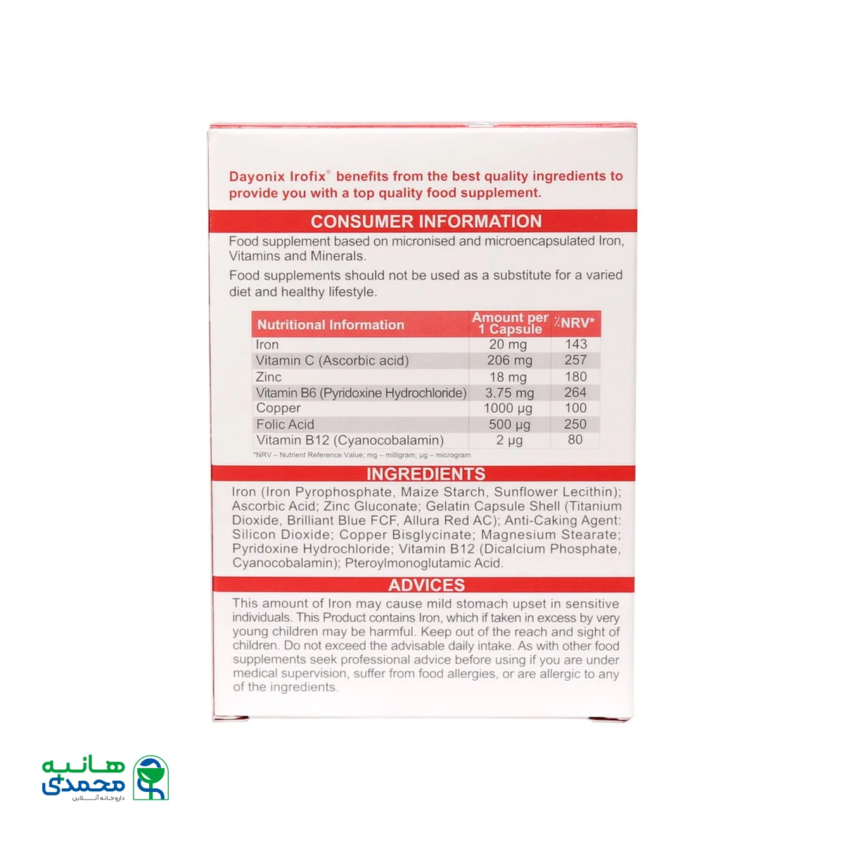 مشخصات کلیDayonix Pharma Irofix 30 Capsules