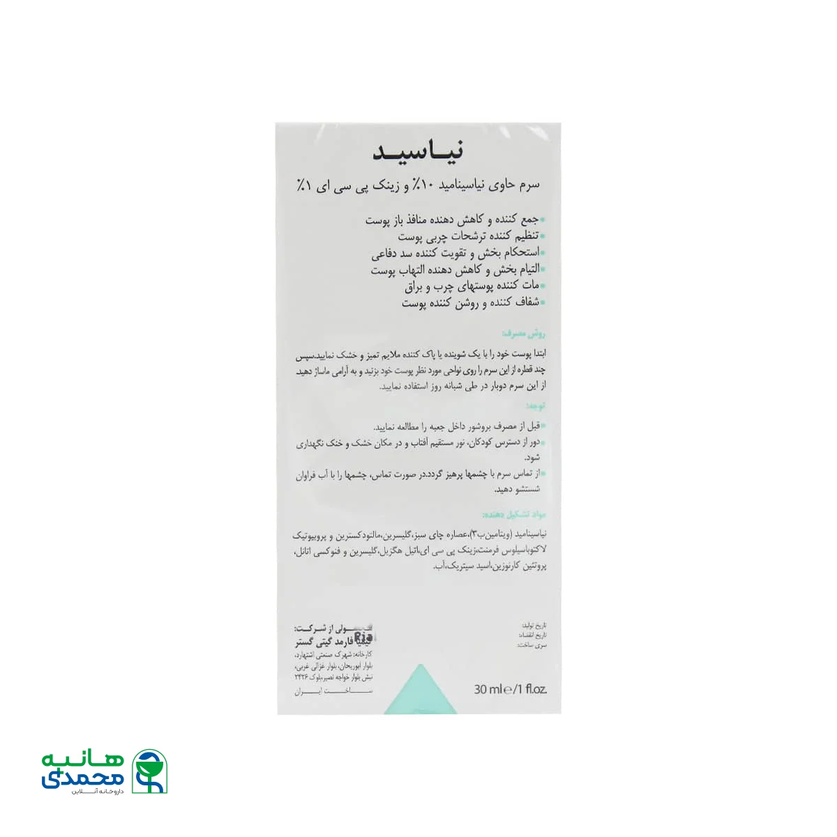 • حاوی نیاسینامید 10% و زینک پی سی ای 1%