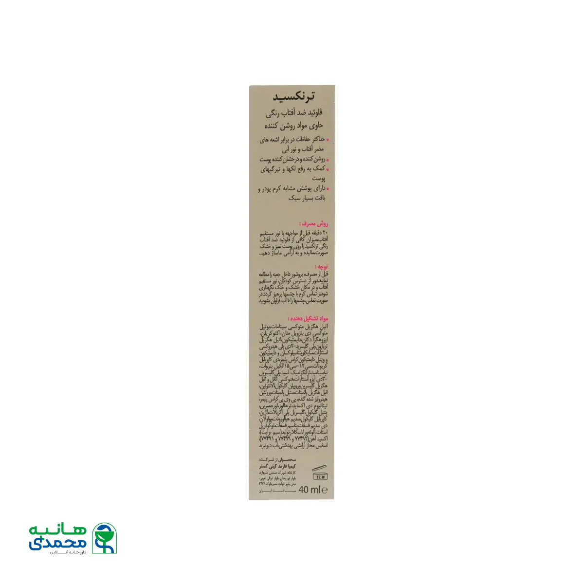 ویژگی های فلوئید ضد آفتاب روشن کننده ترنکسید SPF50 درمالیفت