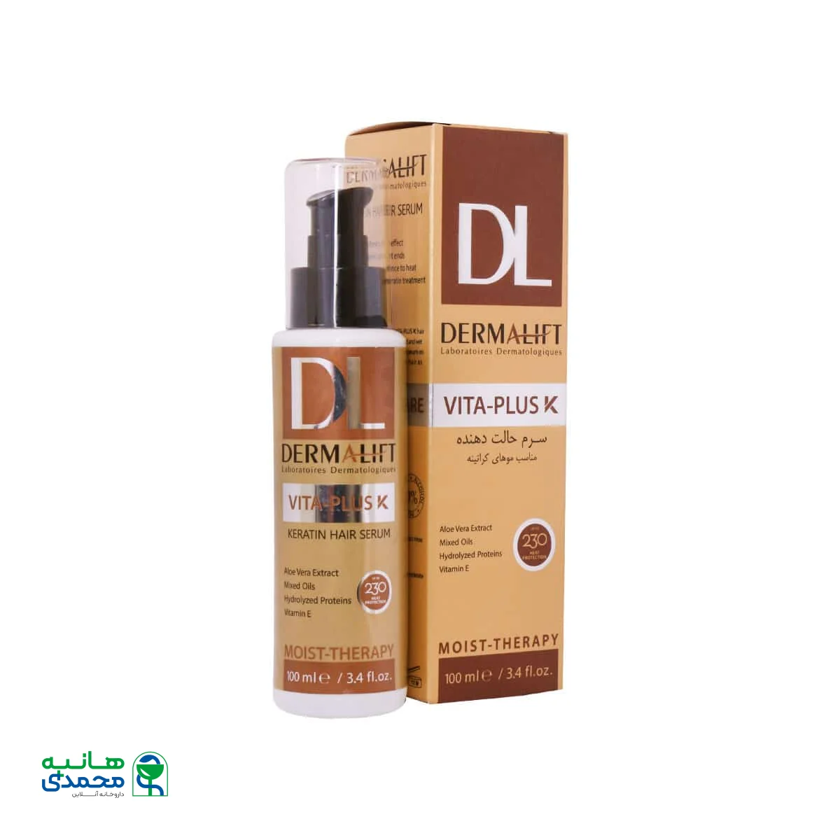 سرم حالت دهنده ویتا پلاس کی درمالیفت مناسب موهای کراتینه 100 میلی لیترDermalift Vita Plus K Hair Serum 100 Ml