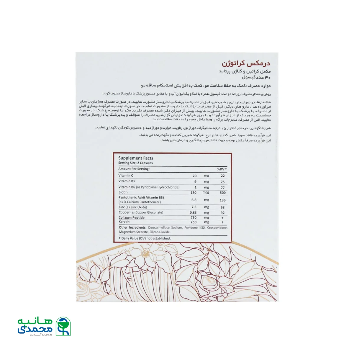 جدول ترکیبات کپسول کراتوژن درمکس