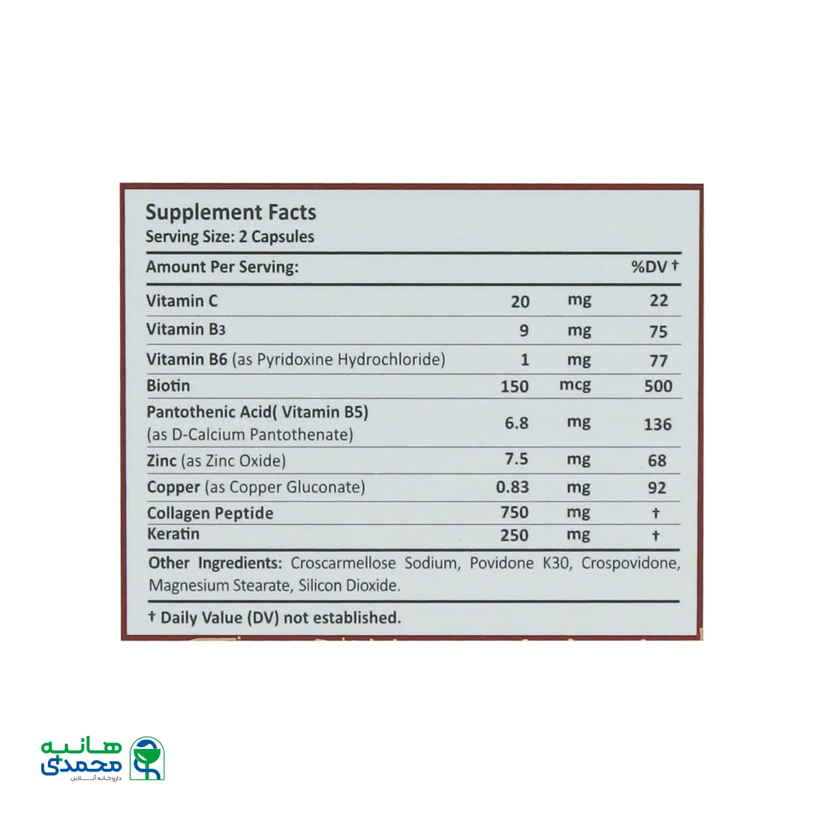 | کلاژن پپتید | 750mg | ** |
