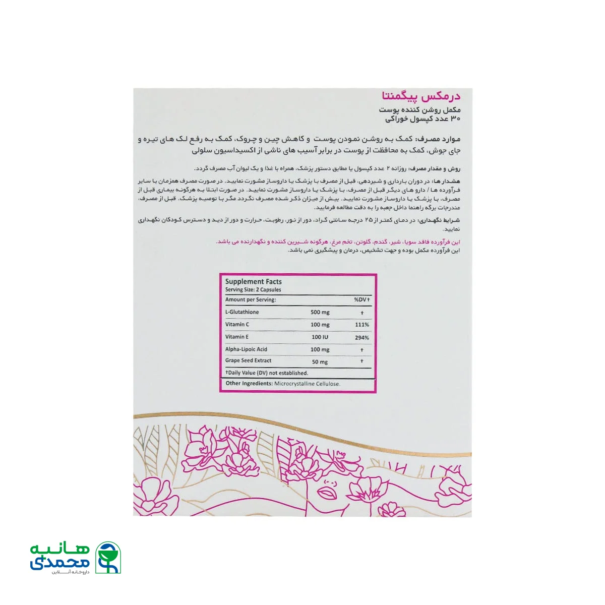 مشخصات کلیDermax Pigmenta Skin Lightener 30 Caps