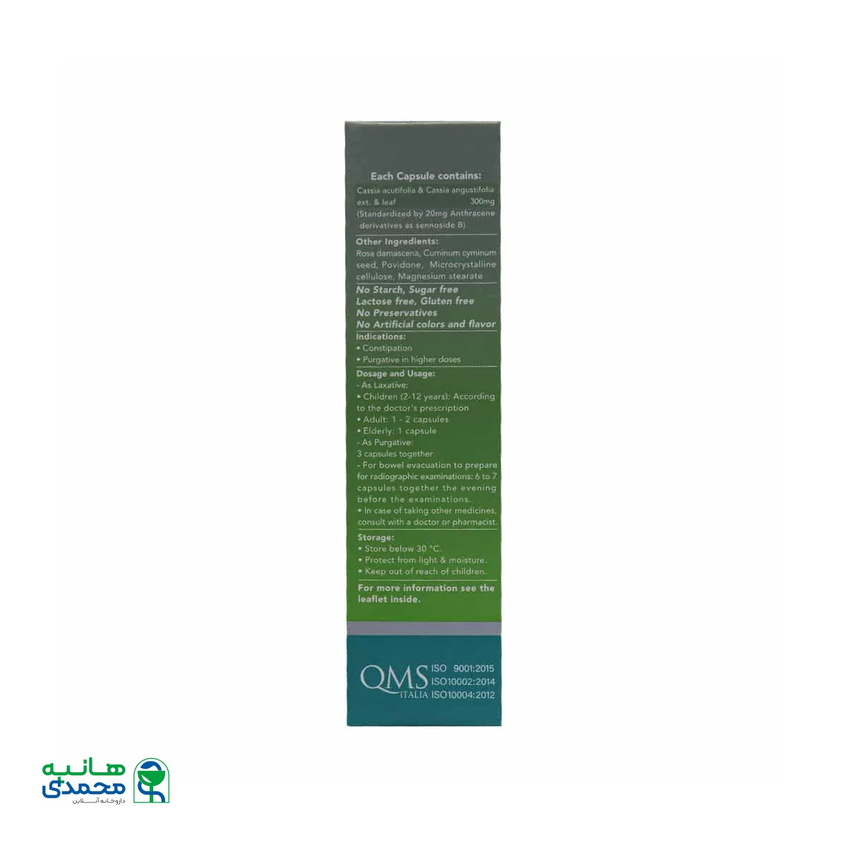 برگ و عصاره سنا 300 میلی گرم (استاندارد شده بر مبنای 20 میلی گرم مشتقات آنتراسن بر مبنای سنوزید B)