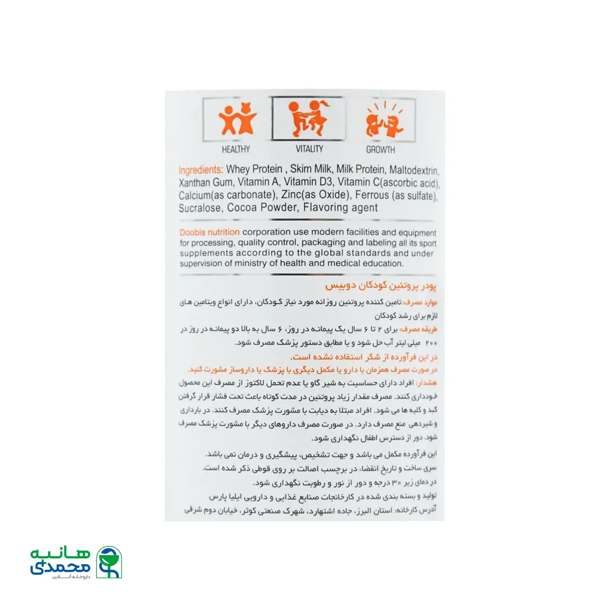 این محصول مکمل تغذیهای بوده و جهت تشخیص، درمان و پیشگیری نیست.
