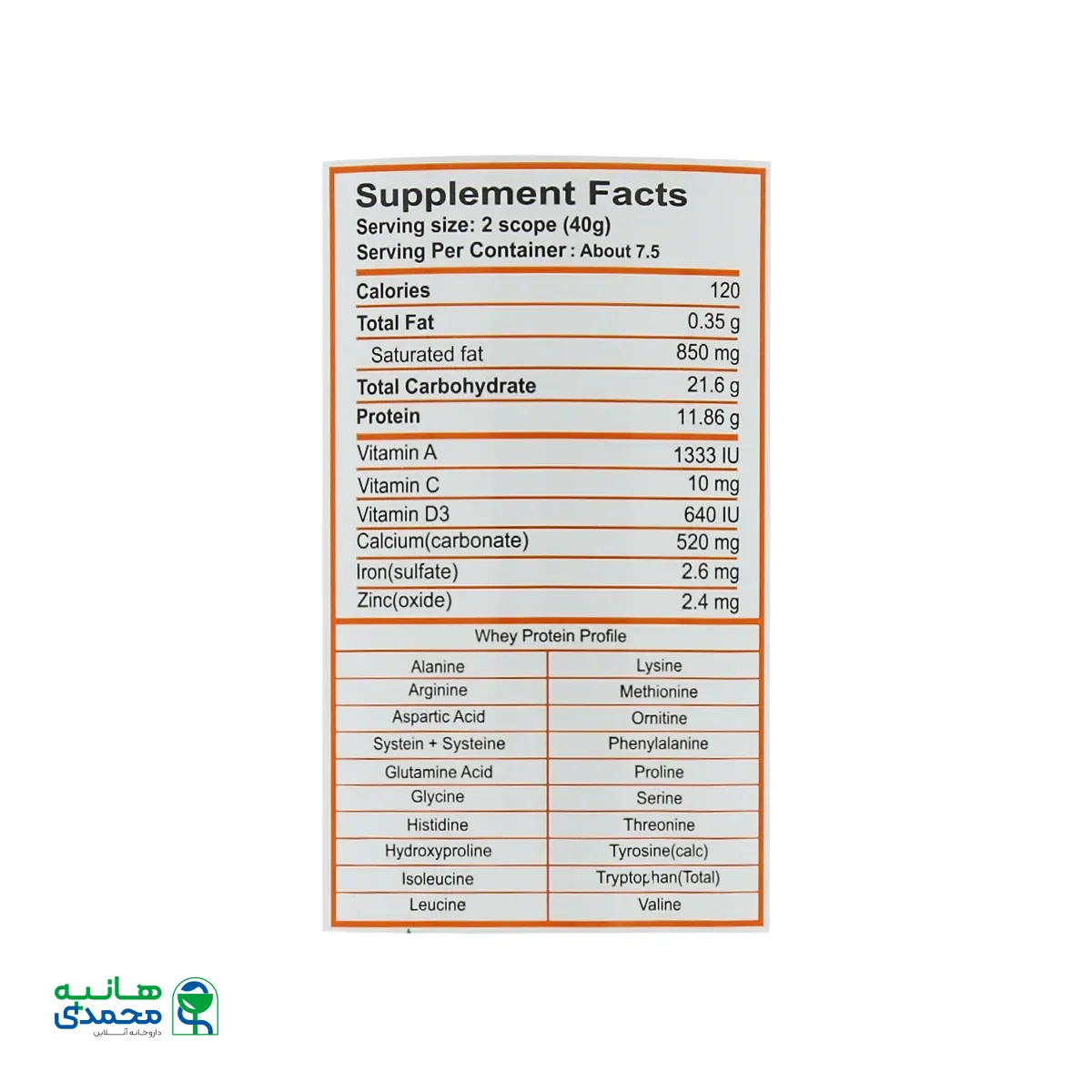 | ترکیبات | مقدار در هر 2 اسکوپ | درصد نیاز مصرف روزانه |