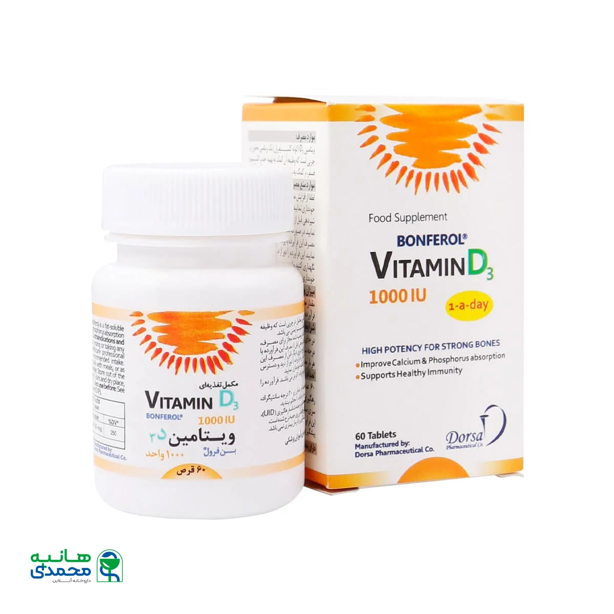 مشخصات کلیDorsa Darou Vitamin D3 1000iu Bonferol 60 Tablets
