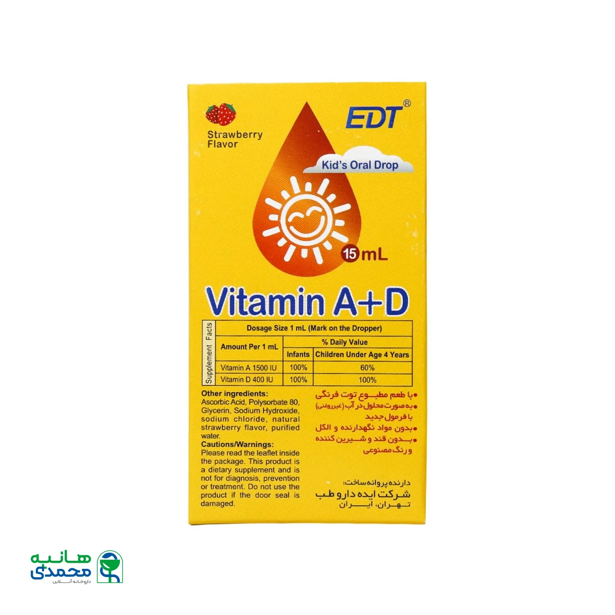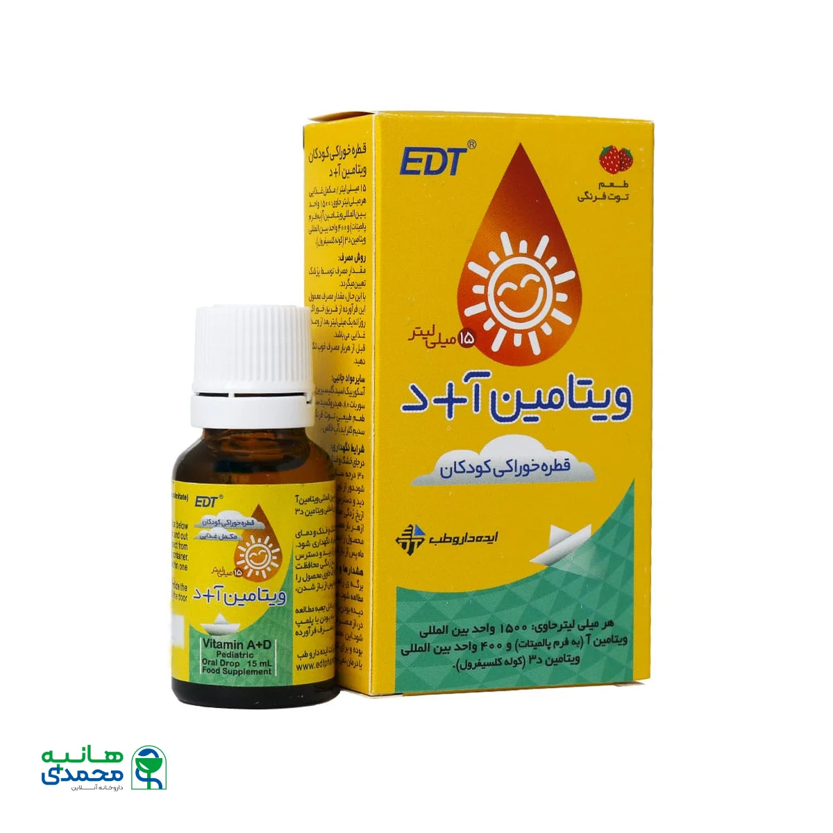 نوزادان از روز پانزدهم نیاز به ویتامین آ و د دارند. قطره خوراکی آ+د ایده دارو طب یکی از محصولاتی است که برای رشد و استخوان سازی ضروری است و به حفظ سطح طبیعی کلسیم خون کمک میکند. این قطره با طعم مطلوب توت فرنگی یک مکمل مناسب جهت تقویت سیستم ایمنی، کمک به جذب طبیعی کلسیم و فسفر، حفظ عملکرد مناسب عضلات، استخوانها و دندانها است.