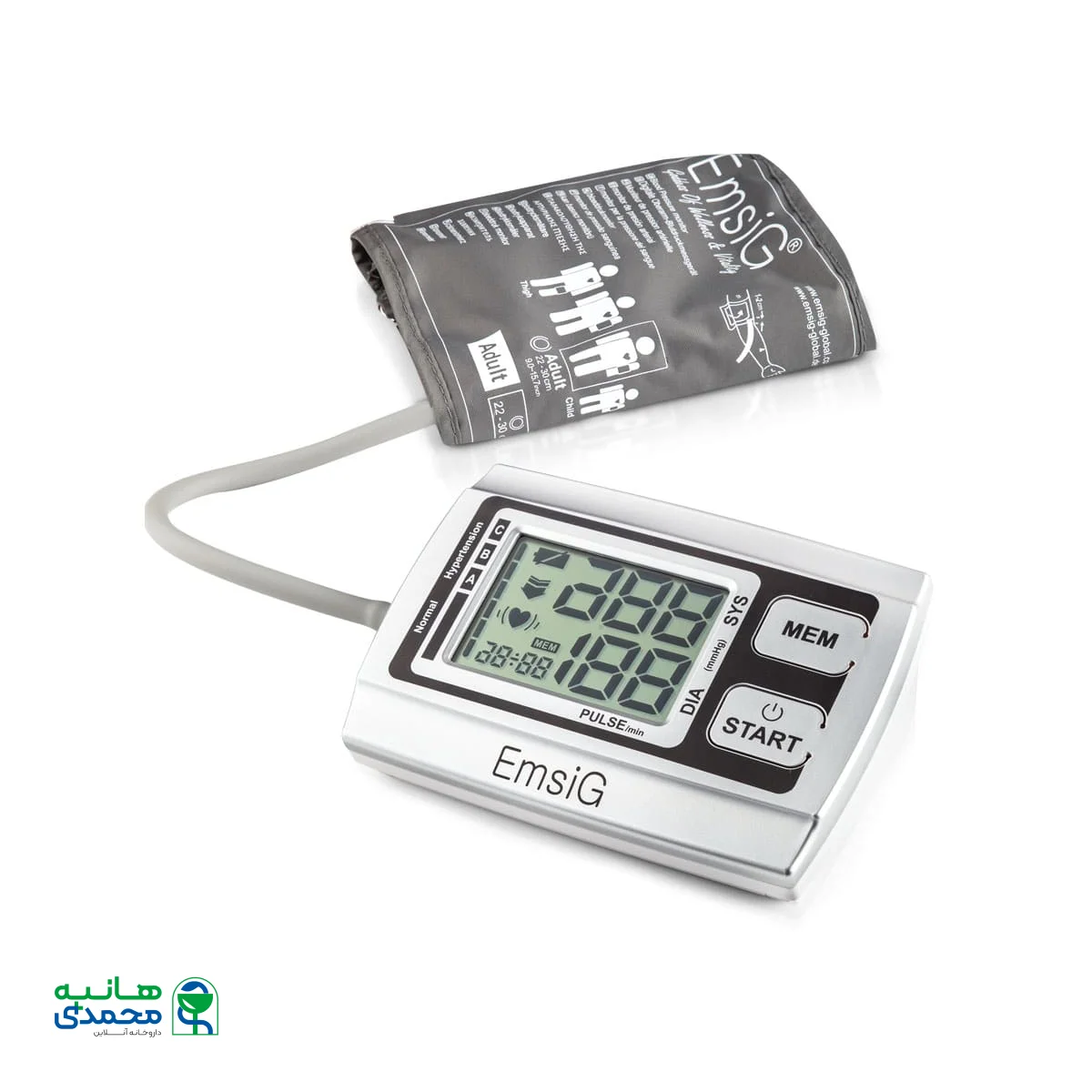 فشارسنج دیجیتالی بازویی امسیگ مدل BO20 به صورت تمام اتوماتیک فشار خون و ضربان قلب را از طریق بازو اندازه میگیرد. این دستگاه قابلیت ذخیره 120 نتیجه برای 2 کاربر دارد. در صورتی که کاربر در هنگام اندازه گیری اشتباهی انجام دهد، دستگاه اخطار می دهد، بعلاوه در هر بار اندارزه گیری زمان و تاریخ آن به همراه اعداد اندازه گیری شده نمایش و ذخیره میشوند. از دیگر قابلیتهای این دستگاه نشانگر هشدار تعویض باتری میباشد که در صورت نیاز به تعویض باتری علامت تعویض باتری روشن میشود.