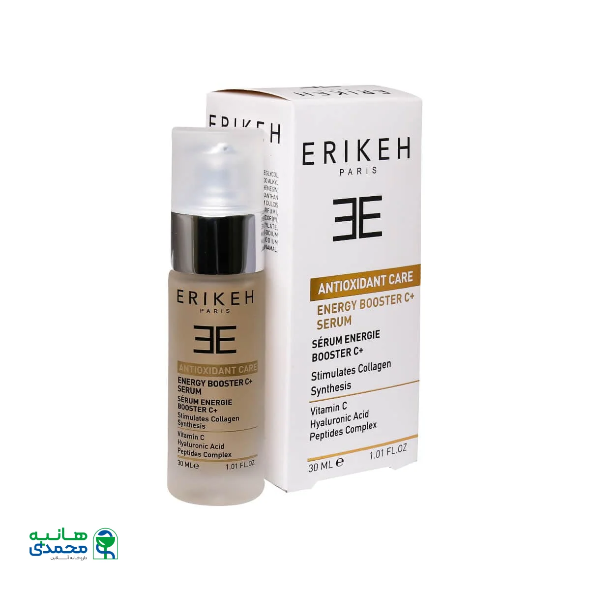 سرم انرژی بوستر ویتامین C اریکه دارای ترکیبی خاص از پرتقال و ویتامین C پایدار (دو ترکیب انرژی رسان فوق العاده) است که باعث درخشان شدن رنگ چهره شده و پوست را صاف کرده و انرژی و جوانی آن را افزایش می دهد. سرم انرژی بوستر ویتامین C اریکه مرطوب کننده، تنظیم کننده ترشح چربی پوست، ضد چروک و فاقد چربی است که در پوست های جوان و چرب به عنوان انرژی رسان و پیشگیری کننده از ایجاد چروک، و در پوست های بالغ و دارای چروک، برای درمان آسیب های پیش آمده به کار می رود. این محصول با داشتن ترکیبات آنتی اکسیدان، از آسیب های ناشی از رادیکال های آزاد بر پوست جلوگیری کرده و با اثر ساخت دوباره کلاژن، داشتن پوستی جوان تر را تضمین می کند.