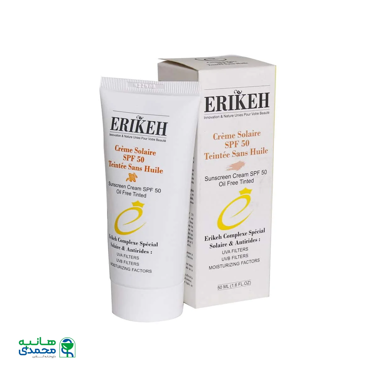 کرم ضد آفتاب رنگی SPF50 اریکه مانند سایر کرمهای ضد آفتاب این برند حاوی فیلترهای قوی و موثر است. در نتیجه حداکثر محافظت را بدون ایجاد حساسیت برای مصرف کننده فراهم میکند. این محصول دارای ساختاری سبک بوده و در عین حال به دلیل داشتن مواد مرطوب کننده و ضد چروک، پوست را لطیف و نرم میکند. برخی از محصولات مراقبت پوستی رایج، مشکلاتی را برای پوستهای چرب و آکنهدار به وجود میآورند، اما این محصول به دلیل فاقد چربی بودن این مشکل را برطرف کرده است. هنگامی که در معرض نور خورشید (حتی از پشت شیشه یا در هوای ابری) هستید، حتما از کرم ضد آفتاب اریکه استفاده کنید و هر دو ساعت یکبار آن را تجدید کنید. به یاد داشته باشید استفاده از ضد آفتاب مهمترین عامل تضمین کننده شادابی، سلامتی و جوانی پوست است. استفاده از لباس آستین بلند، عینک آفتابی، کلاه لبه دار و کرمهای ضد آفتاب سبب جلوگیری از اثرات مضر نور خورشید میشود.