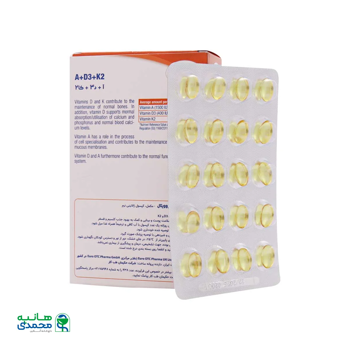 کپسول ویتامین آ د3 و کا2 یوروویتال 60 عددEurhoVital A D3 K2 Vitamins 60 Caps