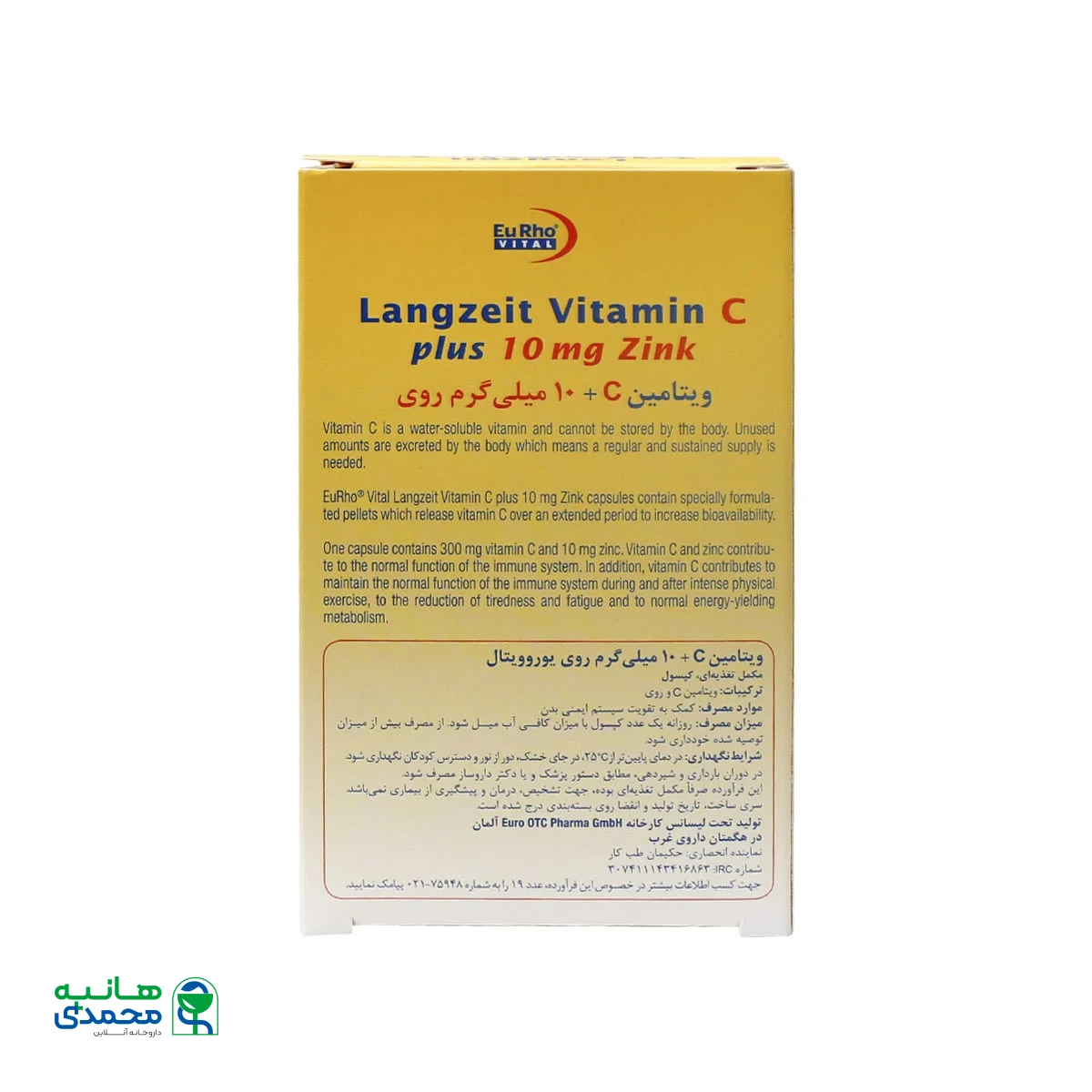 مشخصات کلیEuRho Vital Langzeit Vitamin C plus Zink 10mg 60 Caps