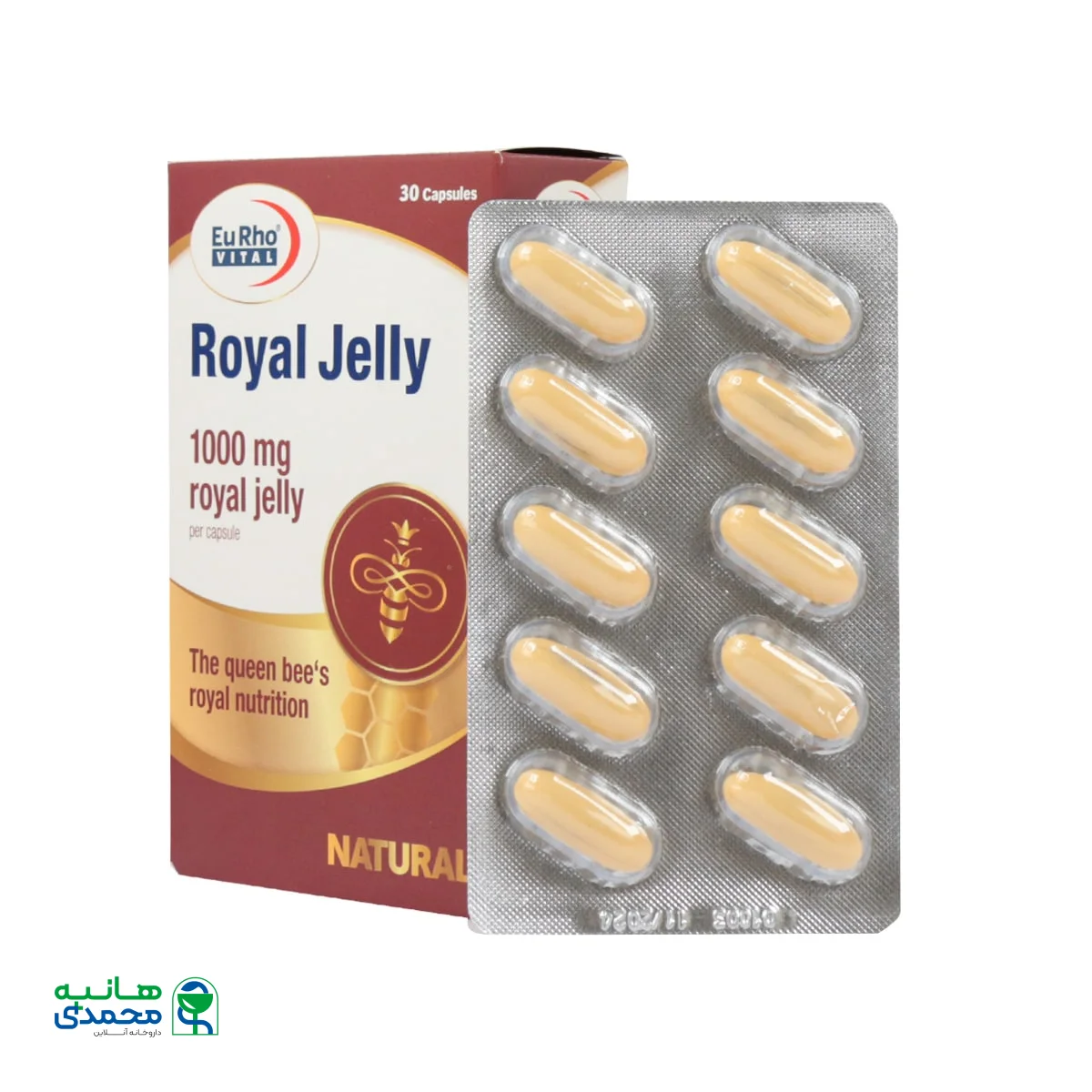 کپسول رویال ژلی یوروویتال یک مکمل غذایی جهت ارتقای سطح سلامت عمومی بدن است. این فرآورده حاوی 1000 میلیگرم ژل رویال بوده و به سبب ترکیبات موثر خود، سیستم ایمنی بدن را تقویت مینماید. رویال ژلی یا همان شاه انگبین، یک ماده شیری رنگ است که ملکه زنبورها از آن تغذیه میکند. این ماده بویی ترش و سوزنده داشته و ظاهری ژلاتینی و چسبنده دارد. ژل رویال به صورت طبیعی حاوی پروتئین، اسیدهای آمینه، اسیدهای چرب و ویتامینهای گروه B است و نقش مهمی را در حفظ سلامت افراد ایفا میکند. به همین دلیل است که اکثر افراد تمایل زیادی به مصرف مکملهای حاوی ژل رویال دارند. اگر شما هم جزو این دسته از اشخاص هستید باید بدانید که مصرف رویال ژلی برای افرادی که به آسم مبتلا هستند و سابقه حساسیت تنفسی دارند، ممنوع است. چراکه مصرف ژل رویال ممکن است در این افراد باعث ایجاد تنگی نفس و اسپاسم تنفسی شود. همچنین اشخاص حساس به نیش زنبور نیز نباید از ژل رویال به صورت مستقیم استفاده کنند. زیرا ممکن است برخی از ترکیبات نیش زنبور در داخل ژل وجود داشته باشد.