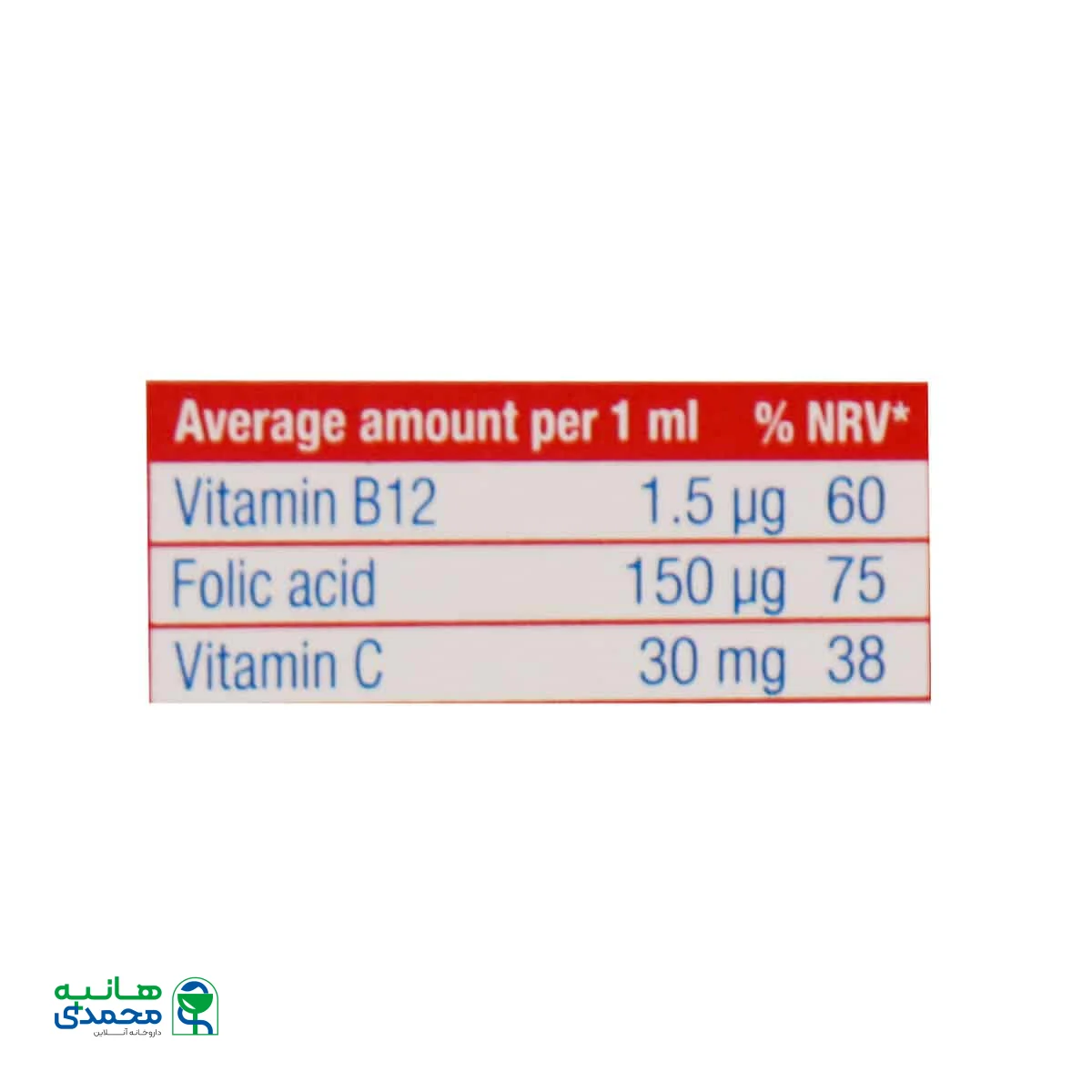 ویژگی های قطره B12 فولیک اسید و ویتامین C یوروویتال