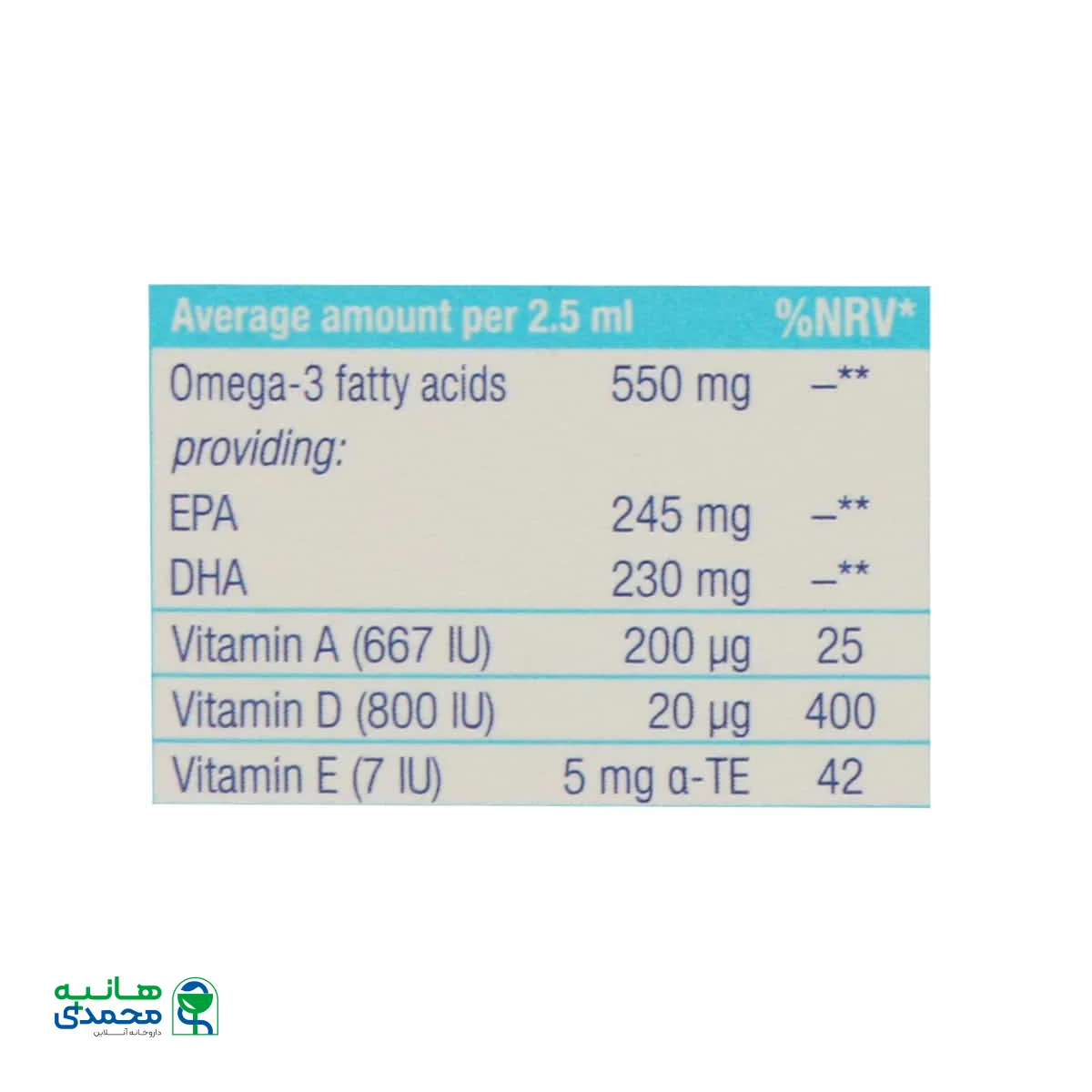 این خاصیت در بسیاری از سیستم‌های بدن اثر مناسبی دارد. اما این موارد تنها فواید قطره امگا 3 کودکان نیست. چرا که قطره DHA یوروویتال با دارا بودن ویتامین D جهت رشد طبیعی، تکامل استخوان و عملکرد طبیعی سیستم ایمنی و همچنین تمایز سلولی موثر عمل می‌نماید. ناگفته نماند طعم مطلوب قطره آ د یورو ویتال که فاقد طعم ماهی بعد از مصرف است باعث می‌شود که این فراورده انتخاب خوبی برای کودکان بالاتر از 12 ماه و کودکان در سنین قبل از مدرسه و دانش آموزان باشد.