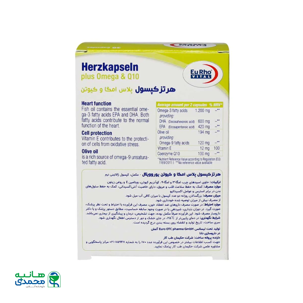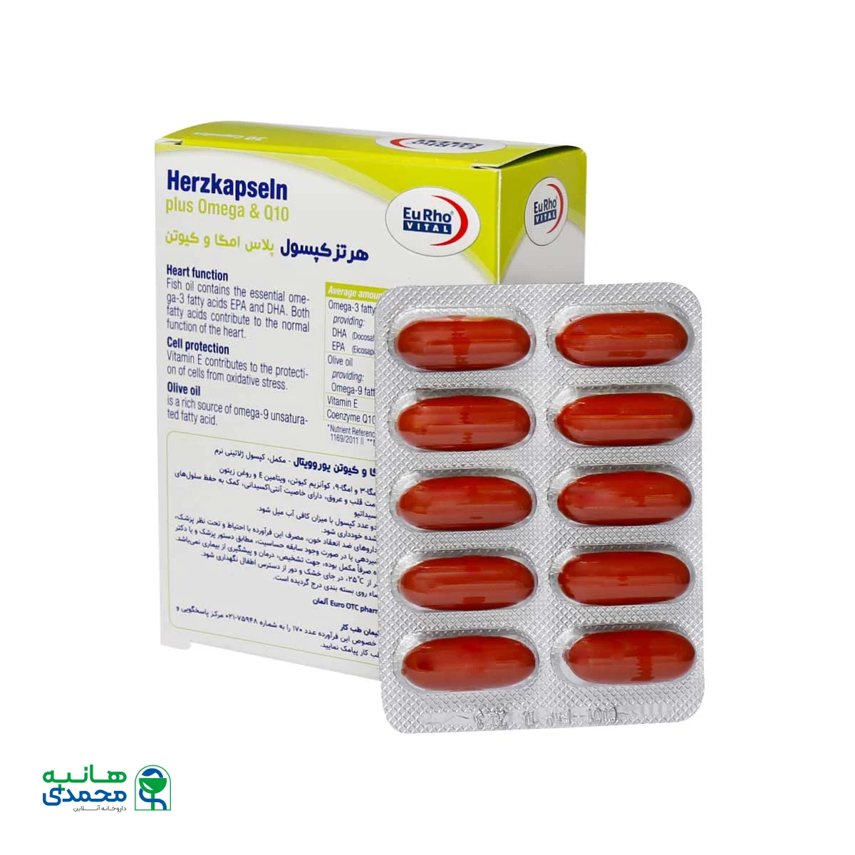 هرتز کپسول پلاس امگا و کیوتن یوروویتال 30 عددEurhovital Herzkapseln Plus Omega And Q10 30 Capsules