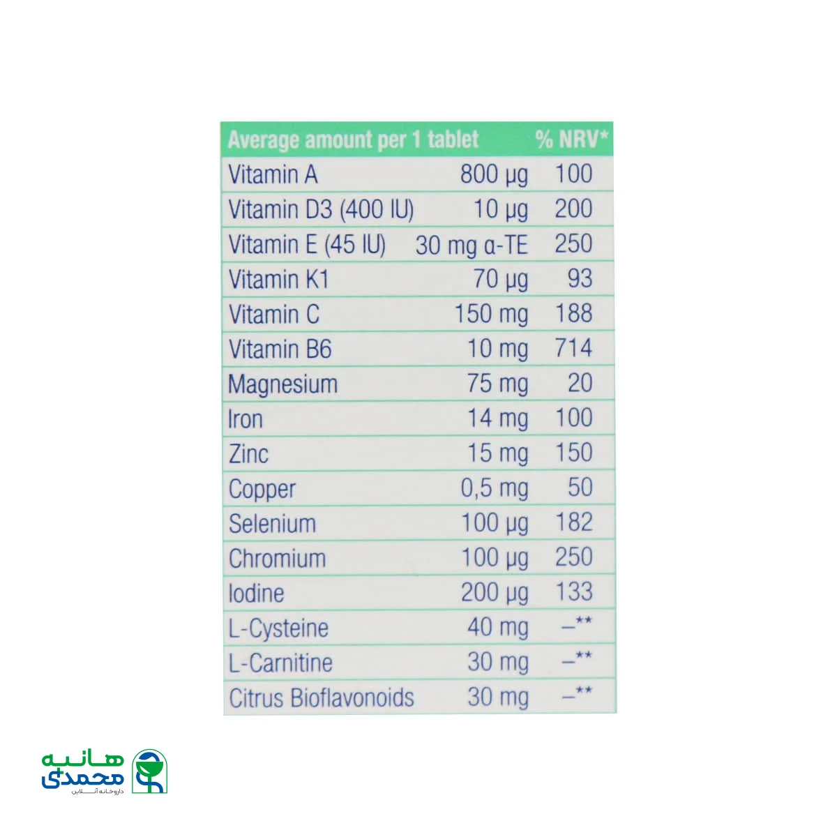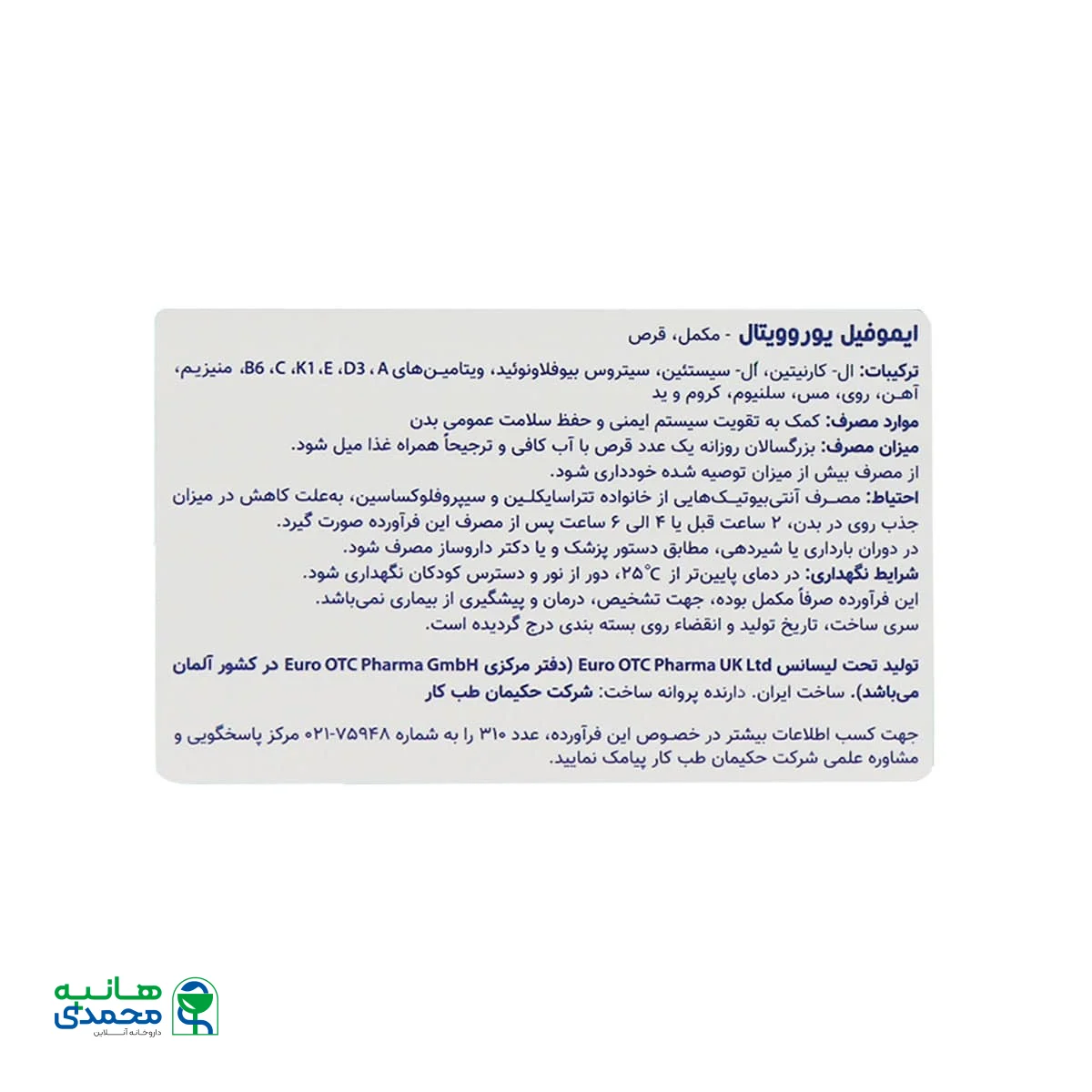 جدول ترکیبات قرص ایموفیل یوروویتال