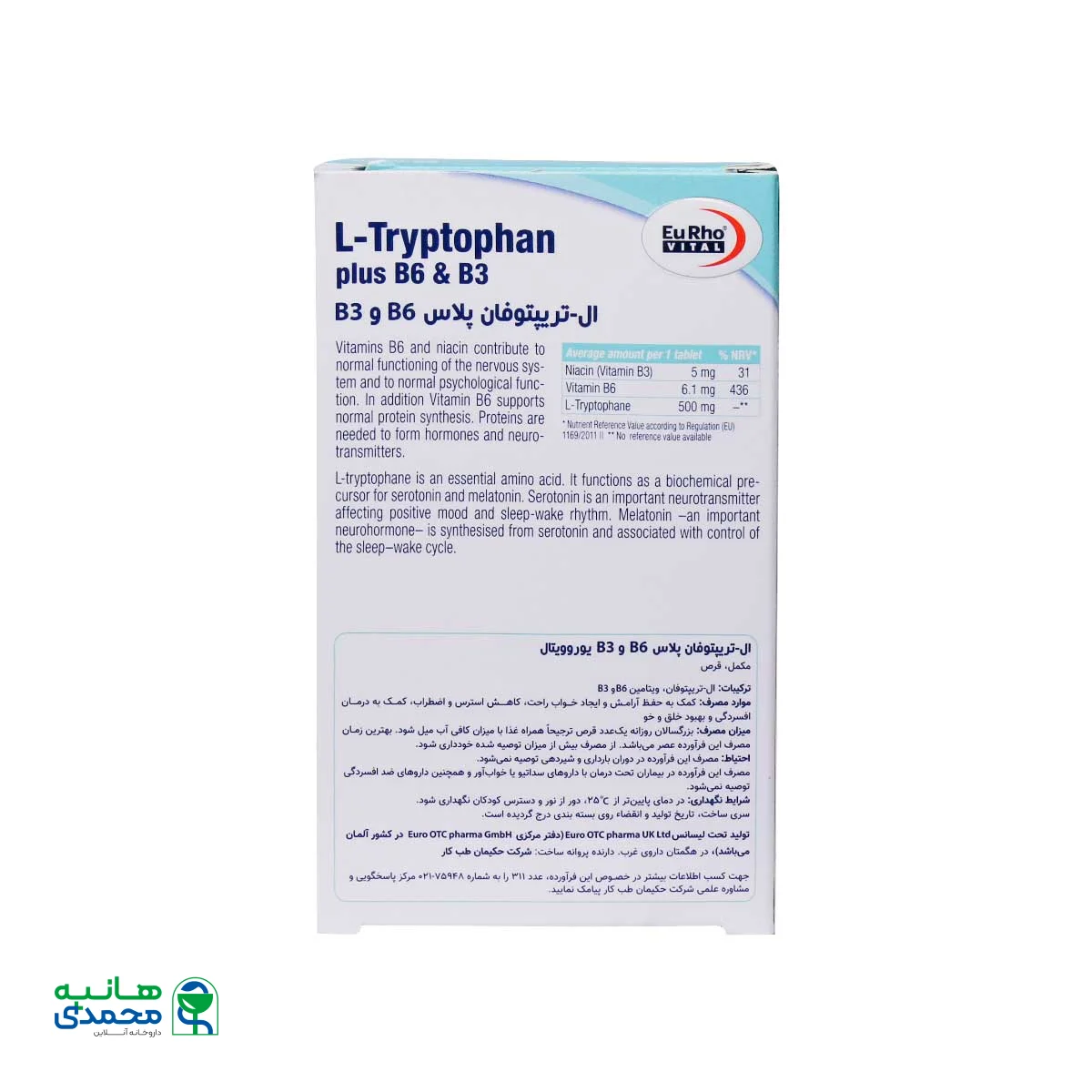 ویژگی های قرص ال تریپتوفان پلاس B6 و B3 یوروویتال