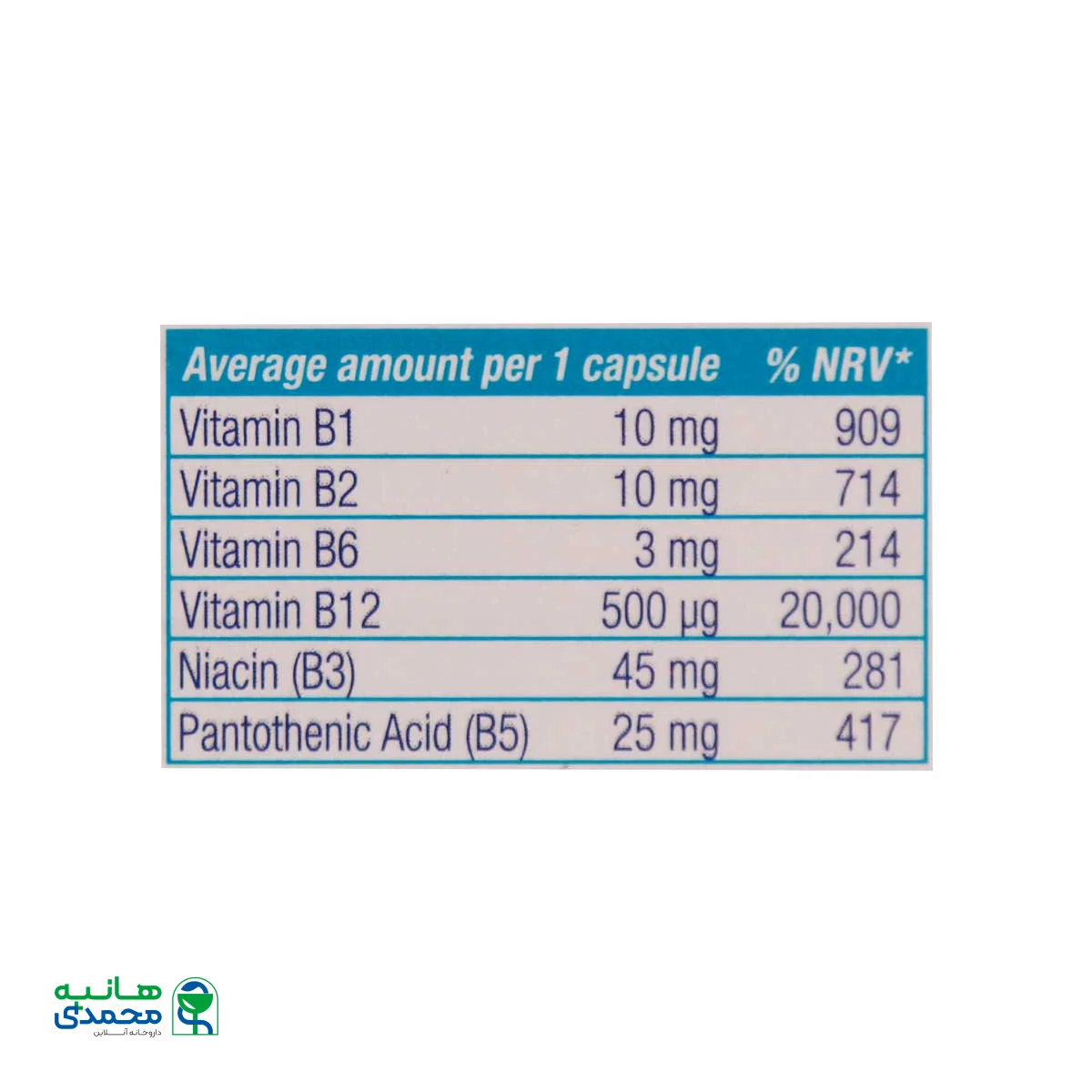 جدول ترکیبات در هر کپسول Neuro B Vit یورو ویتال