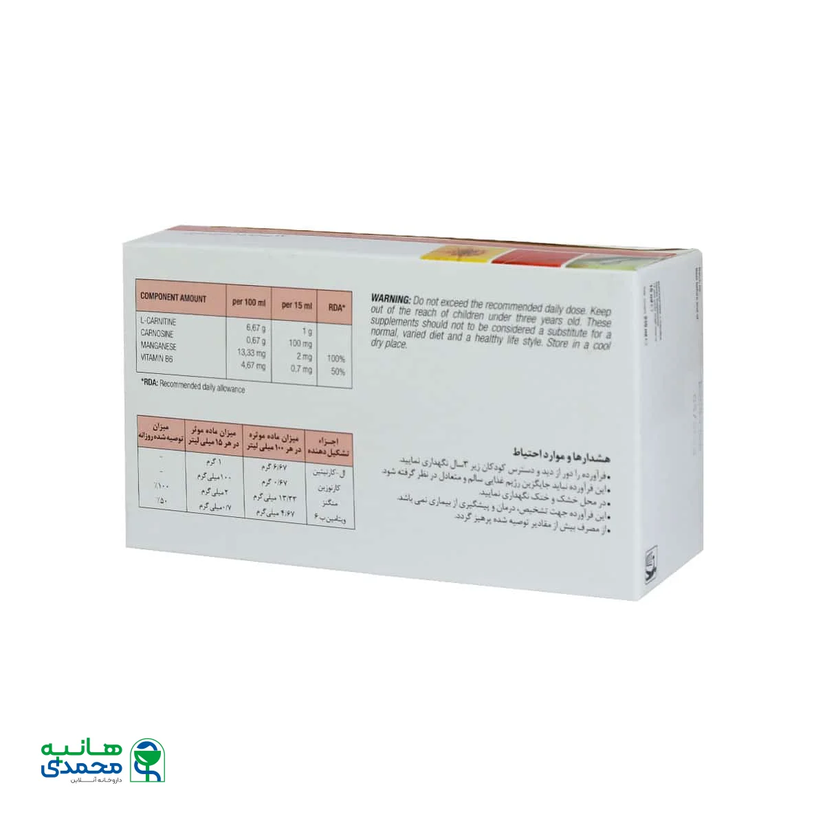ترکیبات در هر 100 میلی لیتر در هر 15 میلی لیتر