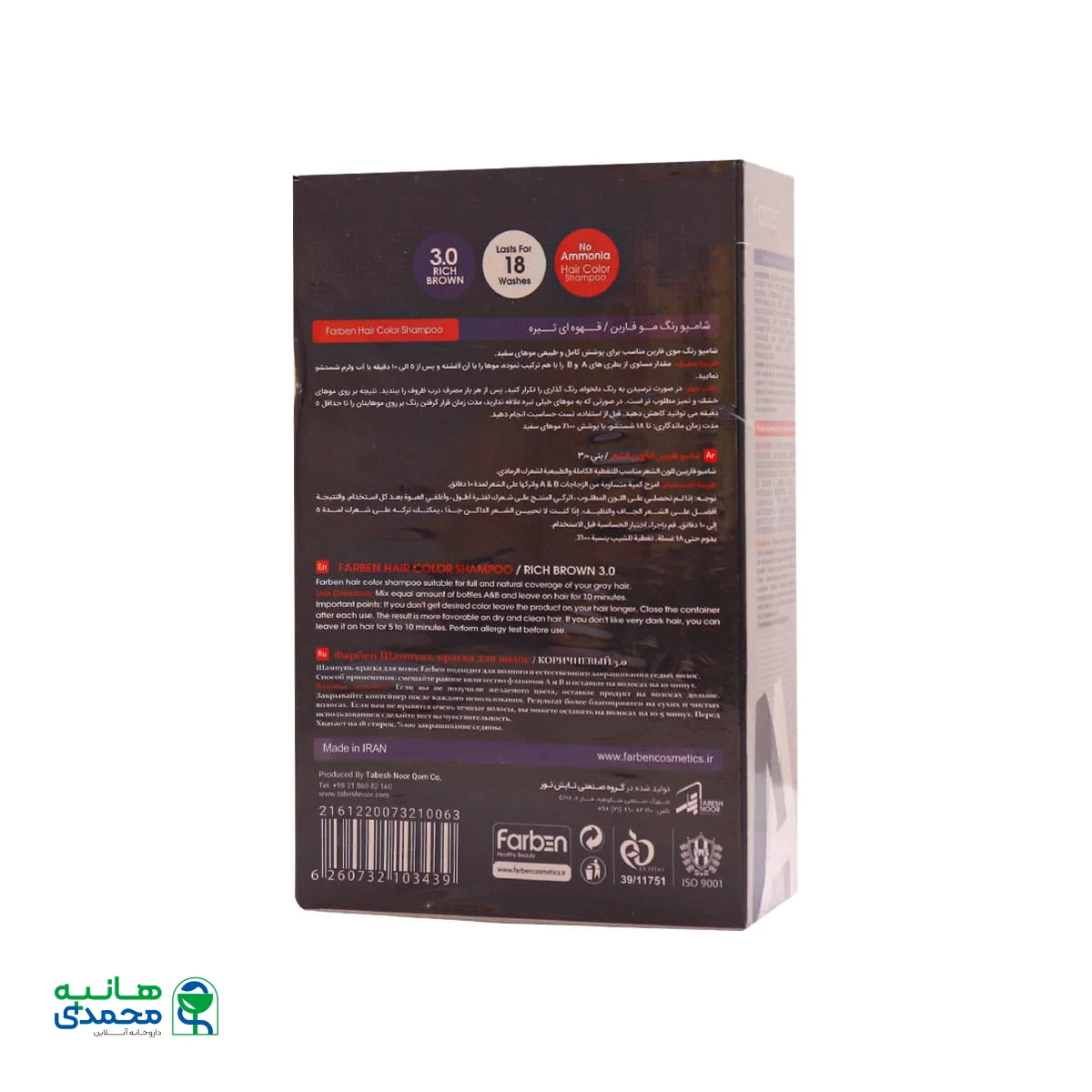 ویژگی های شامپو رنگ موی مردانه قهوه ای فاربن