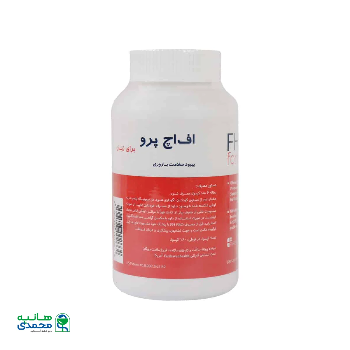 کپسول اف اچ پرو زنان فیرهون هلث تحت لیسانس آمریکا با داشتن ترکیبات موثر مانند ویتامین‌ها و مواد معدنی مورد نیاز بدن به بهبود سلامت باروری، تنظیم هورمون‌ها و سیکل قاعدگی، بهبود عملکرد تخمدان و تقویت سیستم ایمنی بدن خانم‌ها می‌پردازد.
