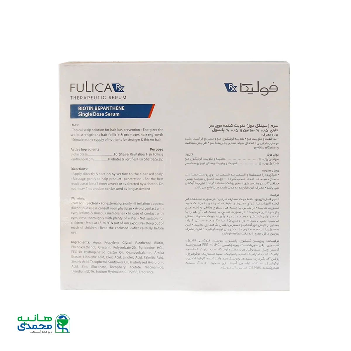 سرم تک دوز بیوتین بپانتین فولیکا آر ایکس تقویت کننده موی سر 10 عددFulica Biotin Bepanthene Therapeutic Serum 10 Pcs